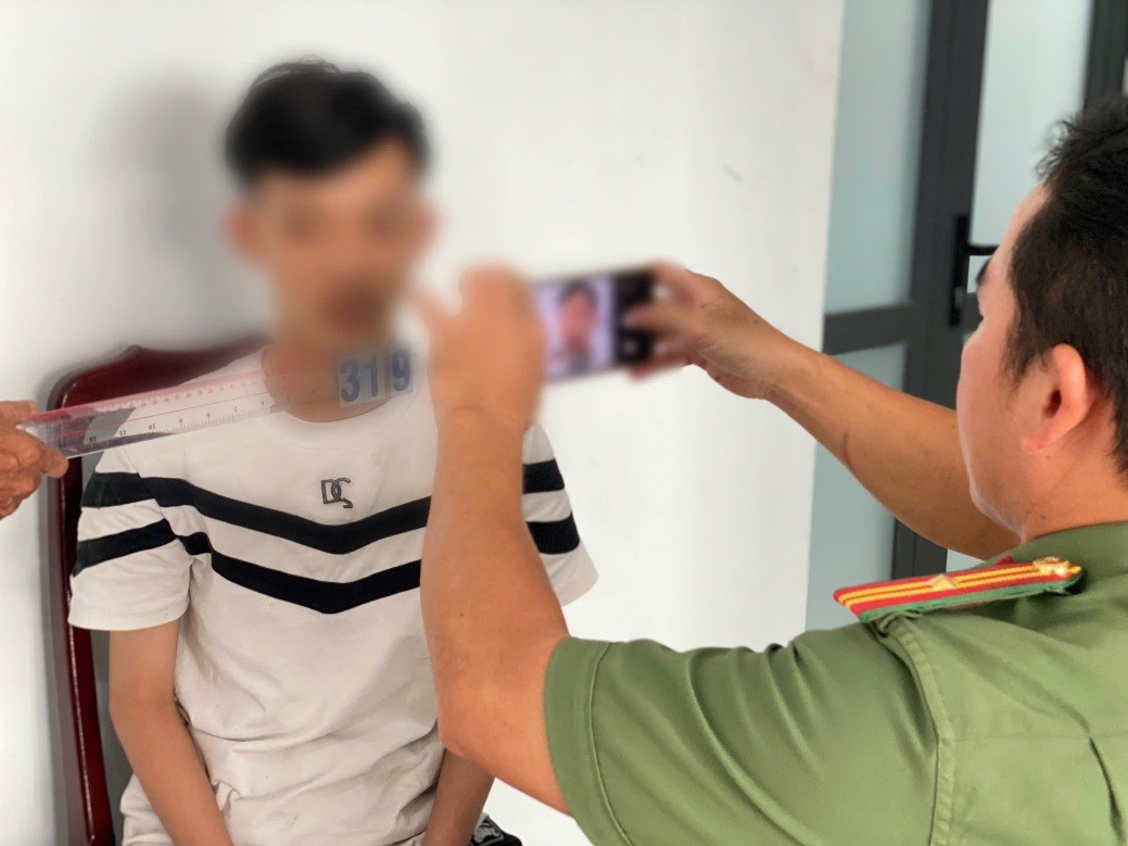 Cán bộ thực hiện quy trình chụp ảnh nhân dạng đối tượng