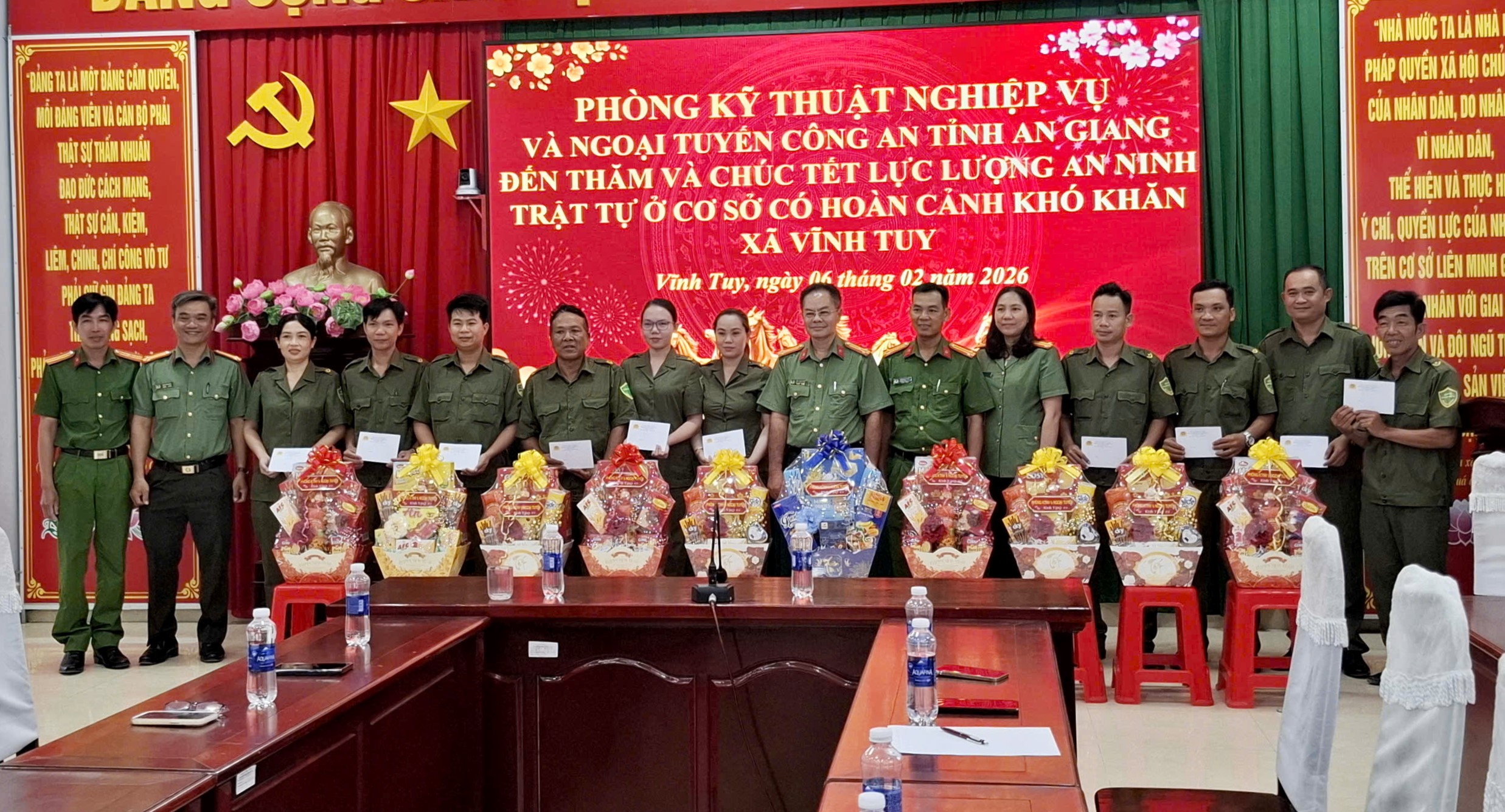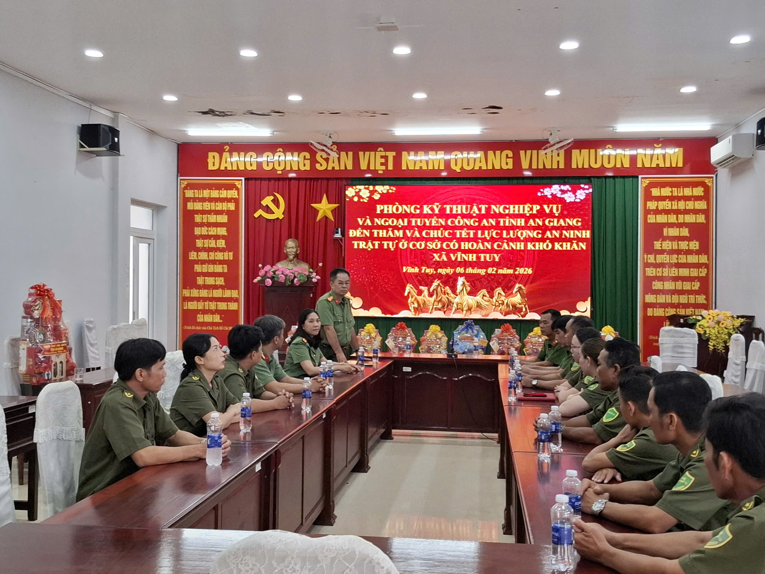 ‎Vừa qua, Đoàn công tác Phòng Kỹ thuật nghiệp vụ và ngoại tuyến Công an tỉnh do đồng chí Thượng tá Ngô Thanh Bình, Phó Trưởng Phòng Kỹ thuật nghiệp vụ làm Trưởng đoàn đã đến thăm, chúc Tết Nguyên đán Bính Ngọ năm 2026 và tặng quà cho lực lượng tham gia bảo vệ an ninh, trật tự ở cơ sở xã Vĩnh Tuy.