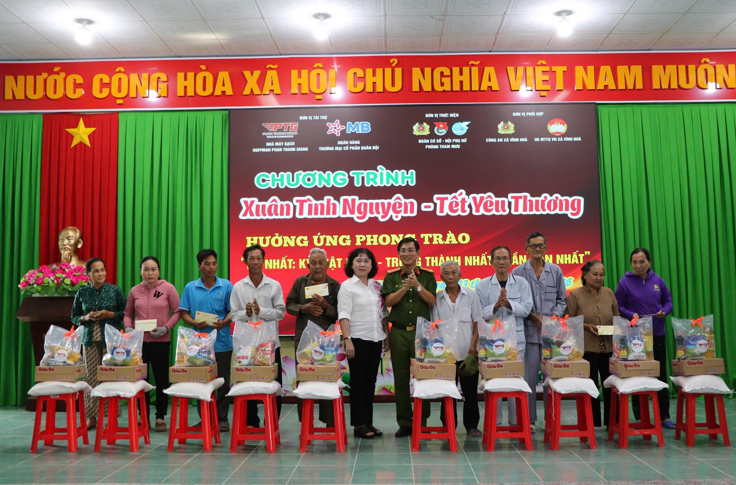 Tham dự chương trình có đồng chí Đại tá Trần Văn Cung – Phó Giám đốc Công an tỉnh An Giang, đại diện lãnh đạo chính quyền địa phương, các đơn vị phối hợp và đông đảo bà con Nhân dân. Tại chương trình, Ban Tổ chức đã trao tặng 100 suất quà, mỗi suất trị giá 500.000 đồng. Những phần quà tuy giá trị không lớn nhưng thể hiện tình cảm, trách nhiệm và sự sẻ chia của lực lượng Công an tỉnh An Giang cùng các nhà hảo tâm đối với người dân có hoàn cảnh khó khăn, góp phần động viên bà con vui Xuân, đón Tết ấm áp, nghĩa tình.