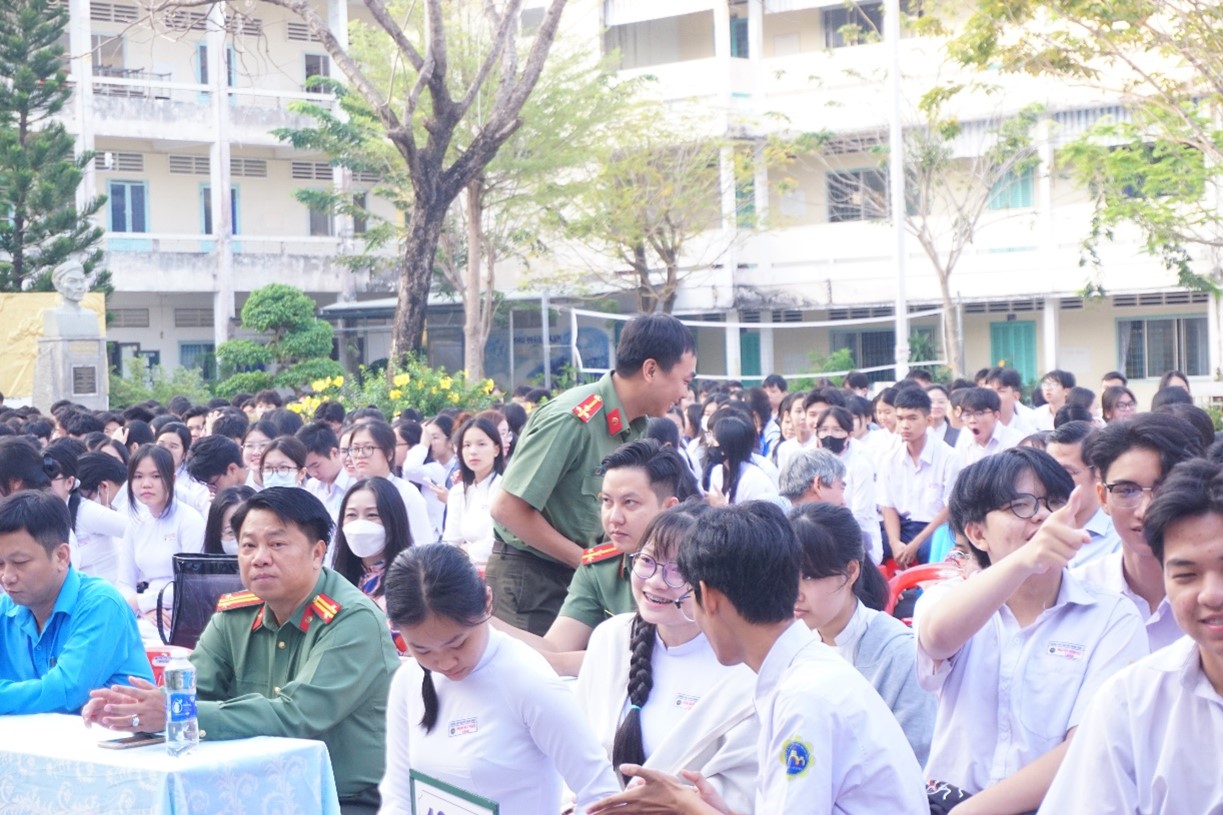 Phòng Tham mưu Công an tỉnh An Giang tuyên truyền bảo đảm an toàn thông tin trên không gian mạng và đảm bảo an toàn phòng cháy, chữa cháy tại Trường THPT Nguyễn Trung Trực 1