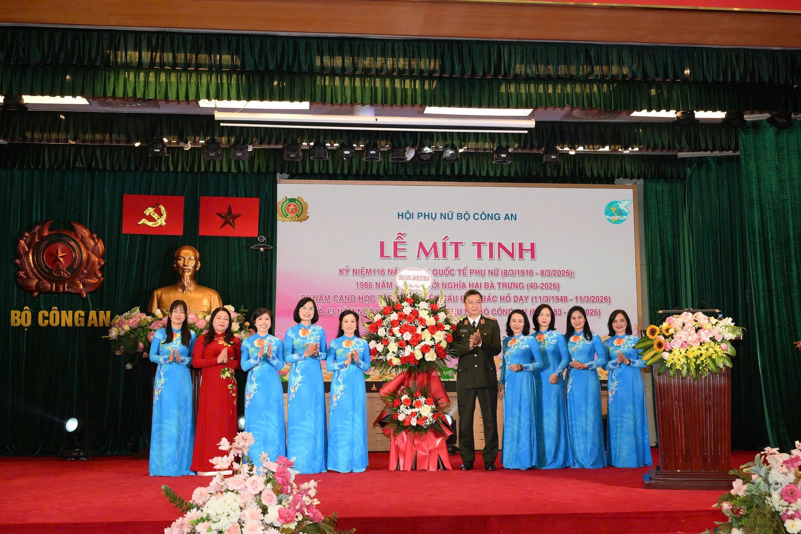 Chiều 06/3/2026, tại Hà Nội, Hội Phụ nữ Bộ Công an tổ chức Lễ mít tinh kỷ niệm 116 năm Ngày Quốc tế Phụ nữ (8/3/1910 – 8/3/2026); 1986 năm cuộc khởi nghĩa Hai Bà Trưng (40-2026); 78 năm Công an nhân dân (CAND) học tập, thực hiện Sáu điều Bác Hồ dạy (11/3/1948-11/3/2026) và 43 năm Ngày thành lập Hội Phụ nữ Bộ Công an (8/3/1983 – 8/3/2026). Thiếu tướng Phạm Kim Đĩnh, Cục trưởng Cục Công tác chính trị, Bộ Công an chủ trì buổi lễ.‎