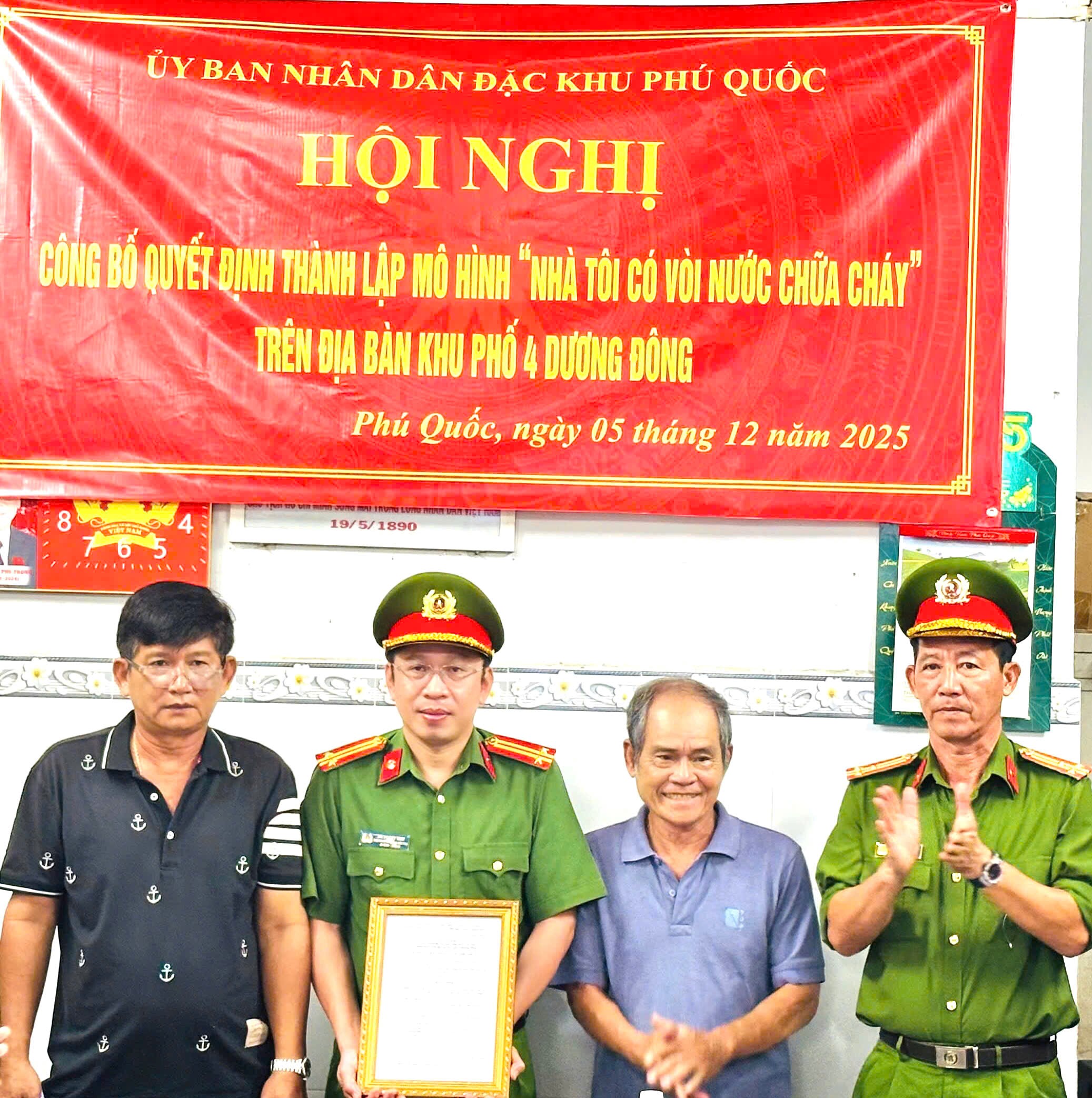 Ngày 04 và 05/12/2025, Ủy ban nhân dân đặc khu Phú Quốc ra mắt mô hình “Nhà tôi có bình chữa cháy” trên địa bàn khu phố 1 Dương Đông và mô hình “Nhà tôi có vòi nước chữa cháy” trên địa bàn khu phố 4 Dương Đông.