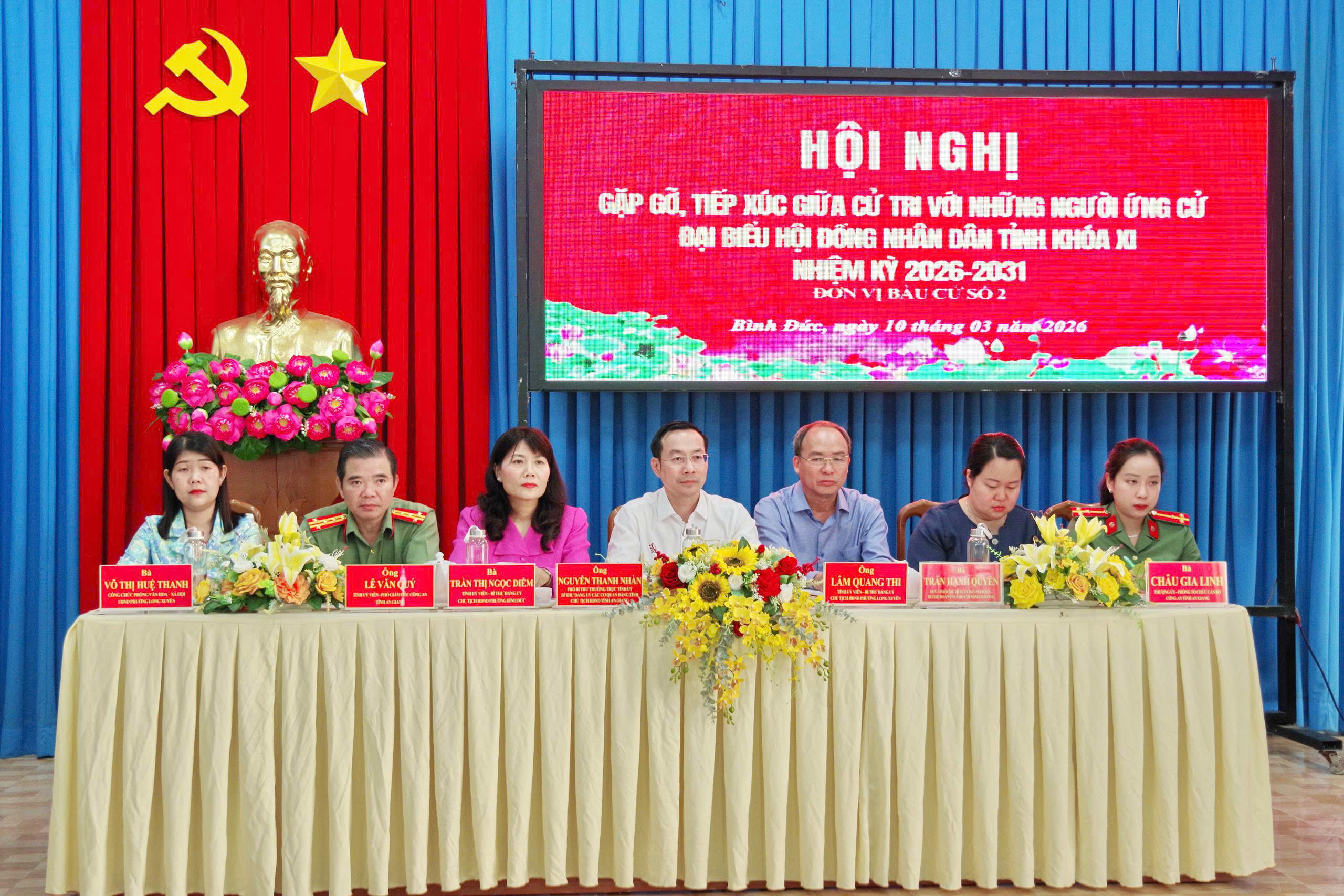 Nhằm tăng cường sự gắn kết giữa đại biểu dân cử với Nhân dân, đồng thời lắng nghe ý kiến, nguyện vọng của cử tri để góp phần bảo đảm tình hình an ninh trật tự và phát triển kinh tế – xã hội địa phương, ngày 10/3, các ứng cử viên đại biểu Hội đồng nhân dân tỉnh An Giang khóa XI, nhiệm kỳ 2026 – 2031, thuộc đơn vị bầu cử số 02 (phường Bình Đức và phường Long Xuyên) đã có buổi gặp gỡ, tiếp xúc cử tri tại phường Bình Đức.