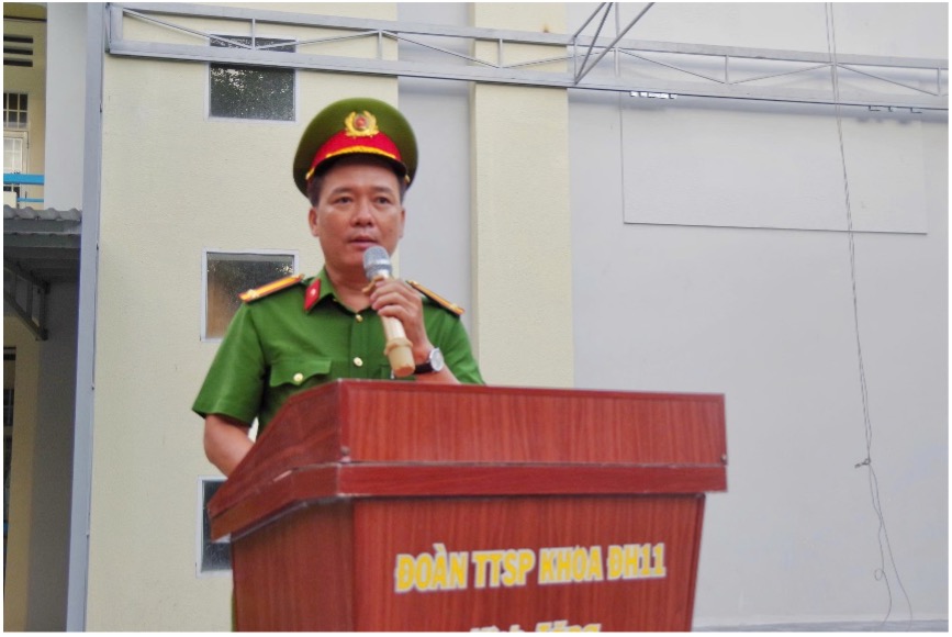 Trung tá Nguyễn Thành Nghiệp phát biểu tại buổi lễ