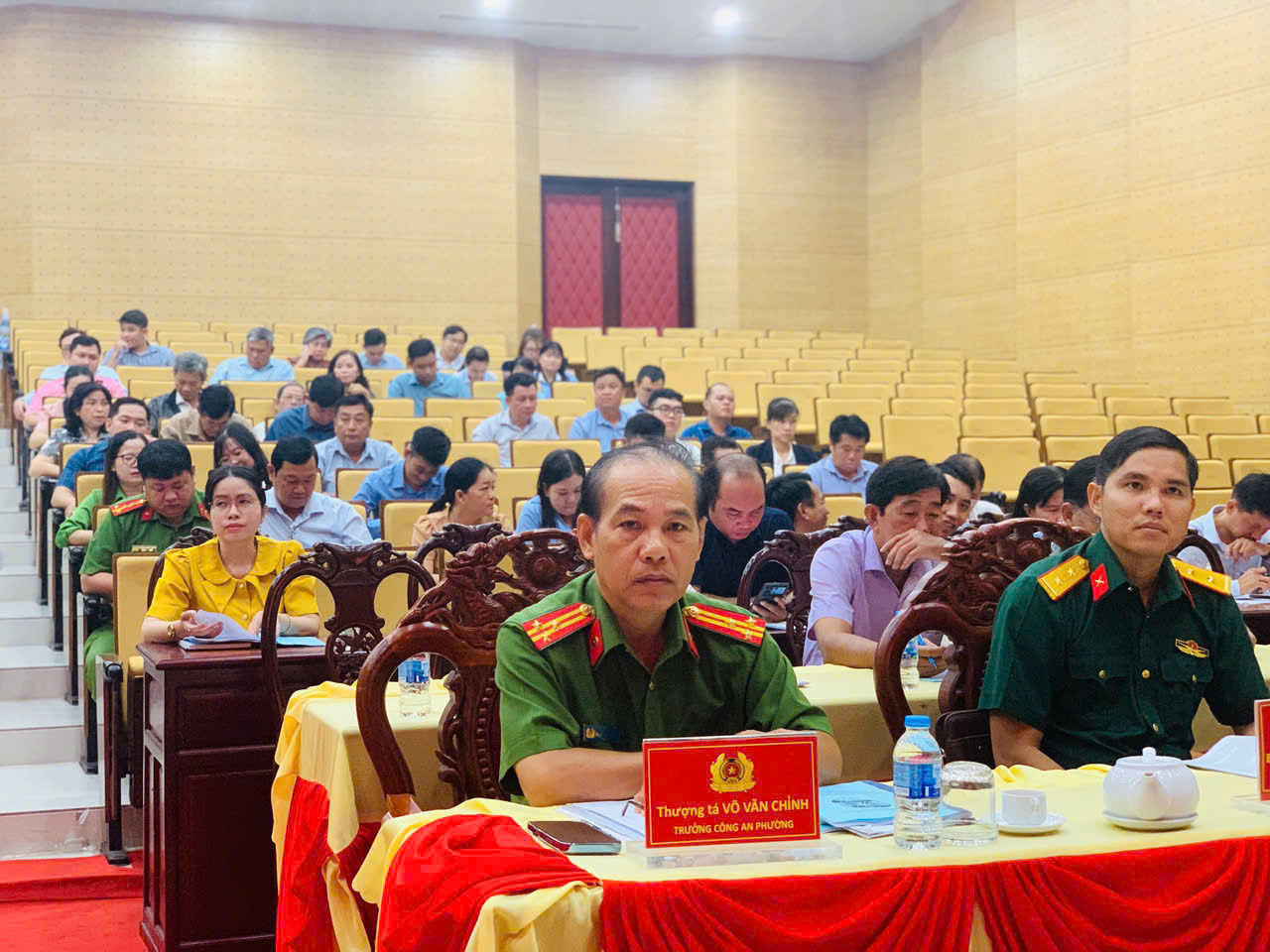 Tham dự hội nghị có bà Đoàn Thị Hương Hà – Phó Bí thư Đảng ủy, Chủ tịch UBND phường; Ban Chỉ huy và cán bộ, chiến sĩ Công an phường; đại diện các ngành, đoàn thể, trường học cùng Trưởng 48 khóm trên địa bàn.