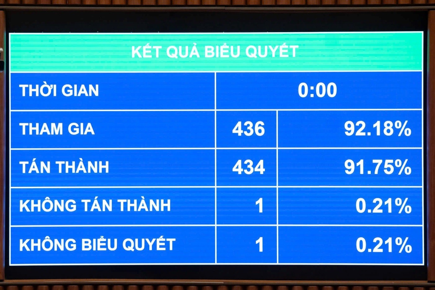 Sáng ngày 10/12/2025, tại Kỳ họp thứ 10, Quốc hội khóa XV, dưới sự điều hành của Chủ tịch Quốc hội Trần Thanh Mẫn và Phó Chủ tịch Quốc hội Thượng tướng Trần Quang Phương, Quốc hội đã biểu quyết thông qua Luật Bảo vệ bí mật nhà nước (sửa đổi) với 434/436 đại biểu có mặt tán thành (tỷ lệ 91,75%). Luật có hiệu lực thi hành từ ngày 01/3/2026.