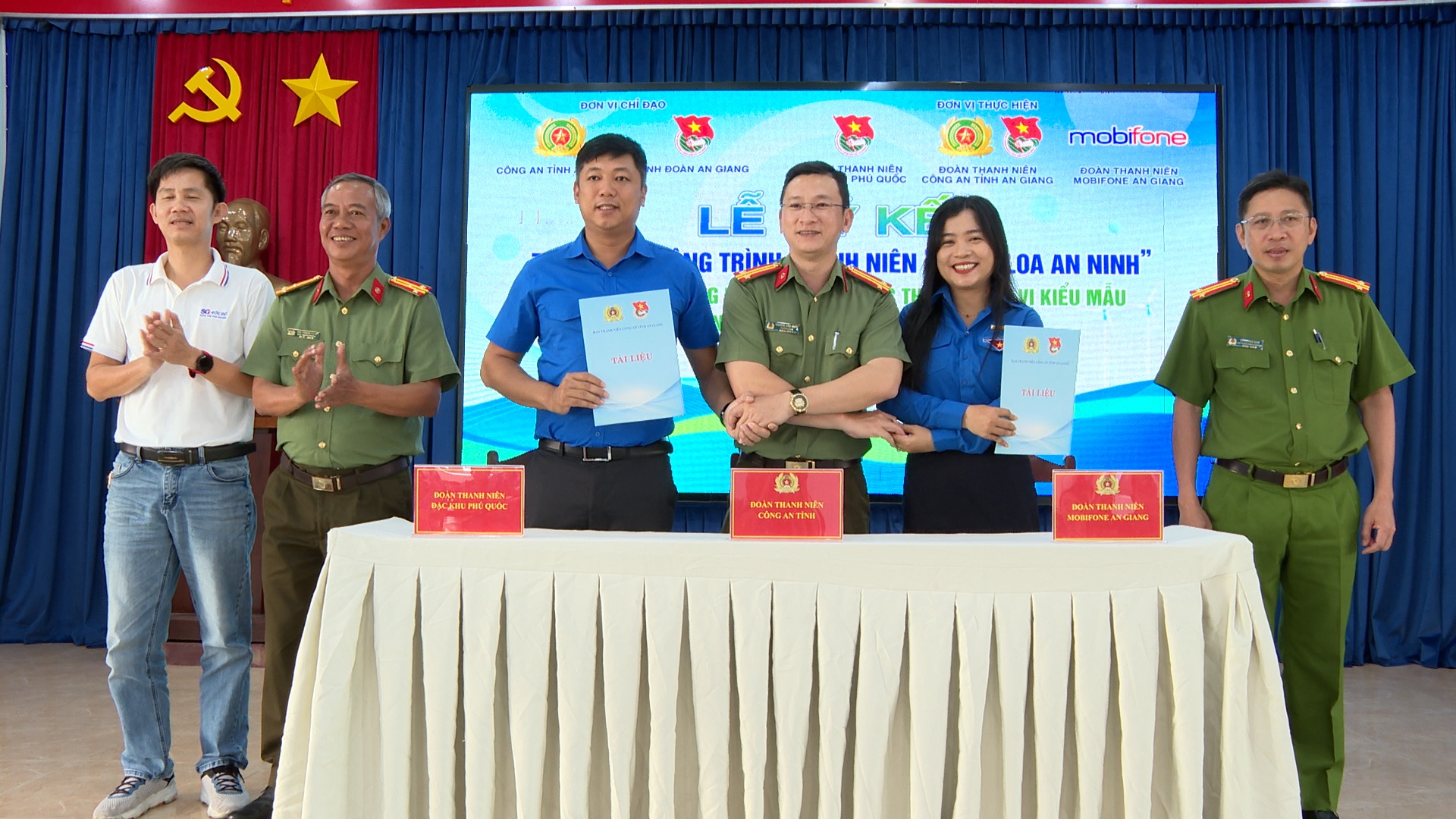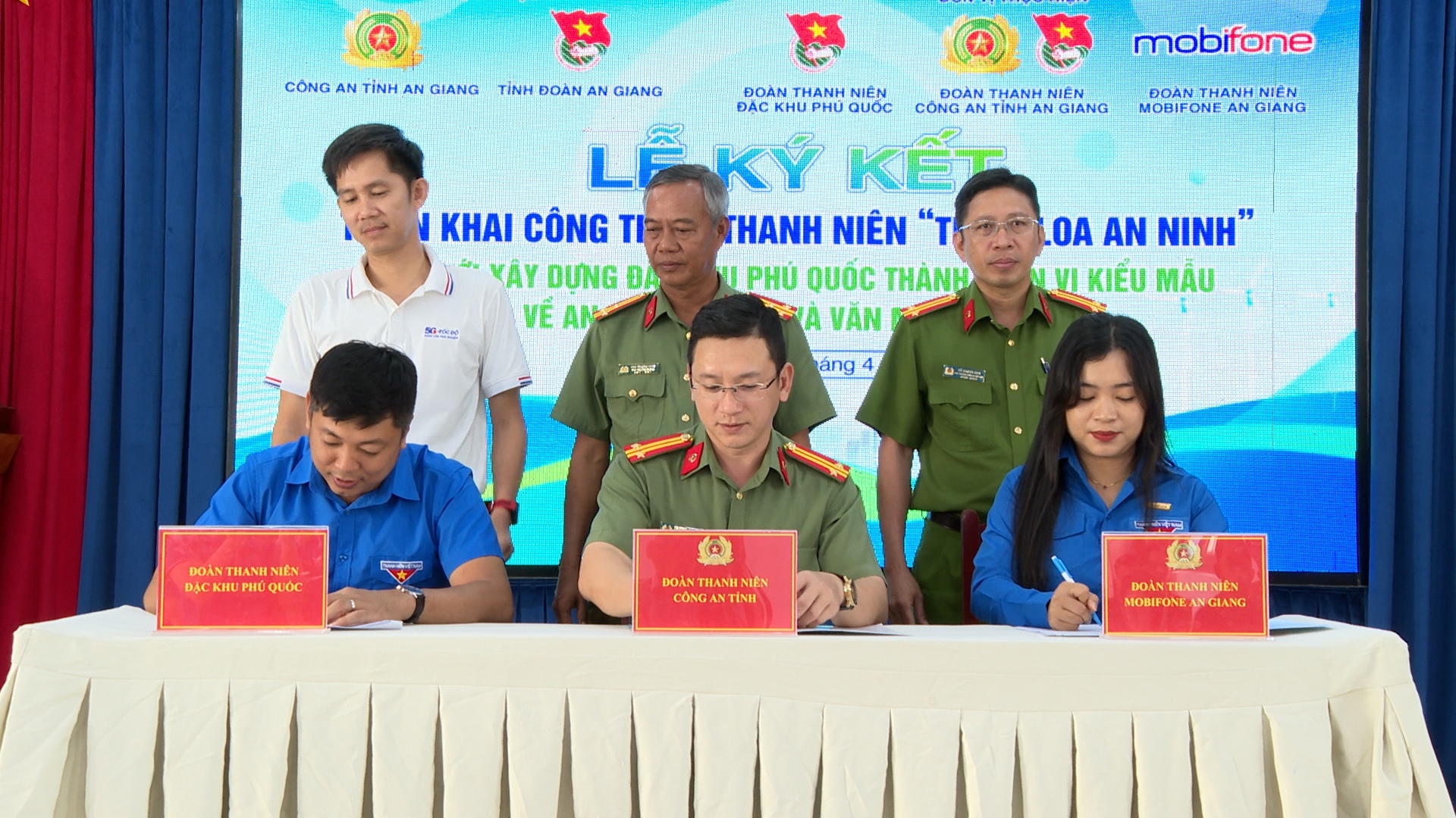 Ban Thanh niên Công an tỉnh An Giang, Đoàn Thanh niên đặc khu Phú Quốc và Đoàn Thanh niên Mobifone An Giang ký kết triển khai công trình thanh niên “Tiếng loa an ninh”.