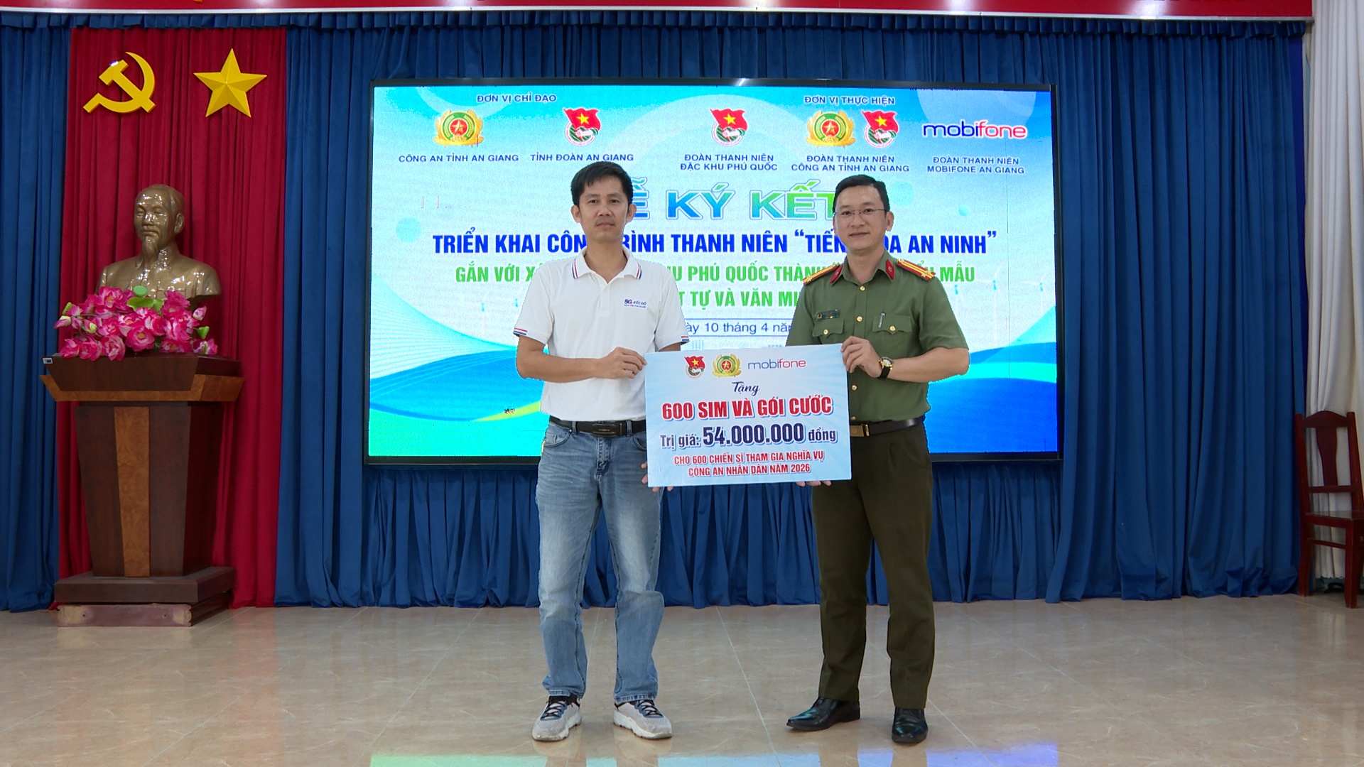 Mobifone An Giang trao tặng 1.600 SIM và gói cước cho Công an đặc khu Phú Quốc cho 600 chiến sĩ tham gia nghĩa vụ Công an nhân dân năm 2026.