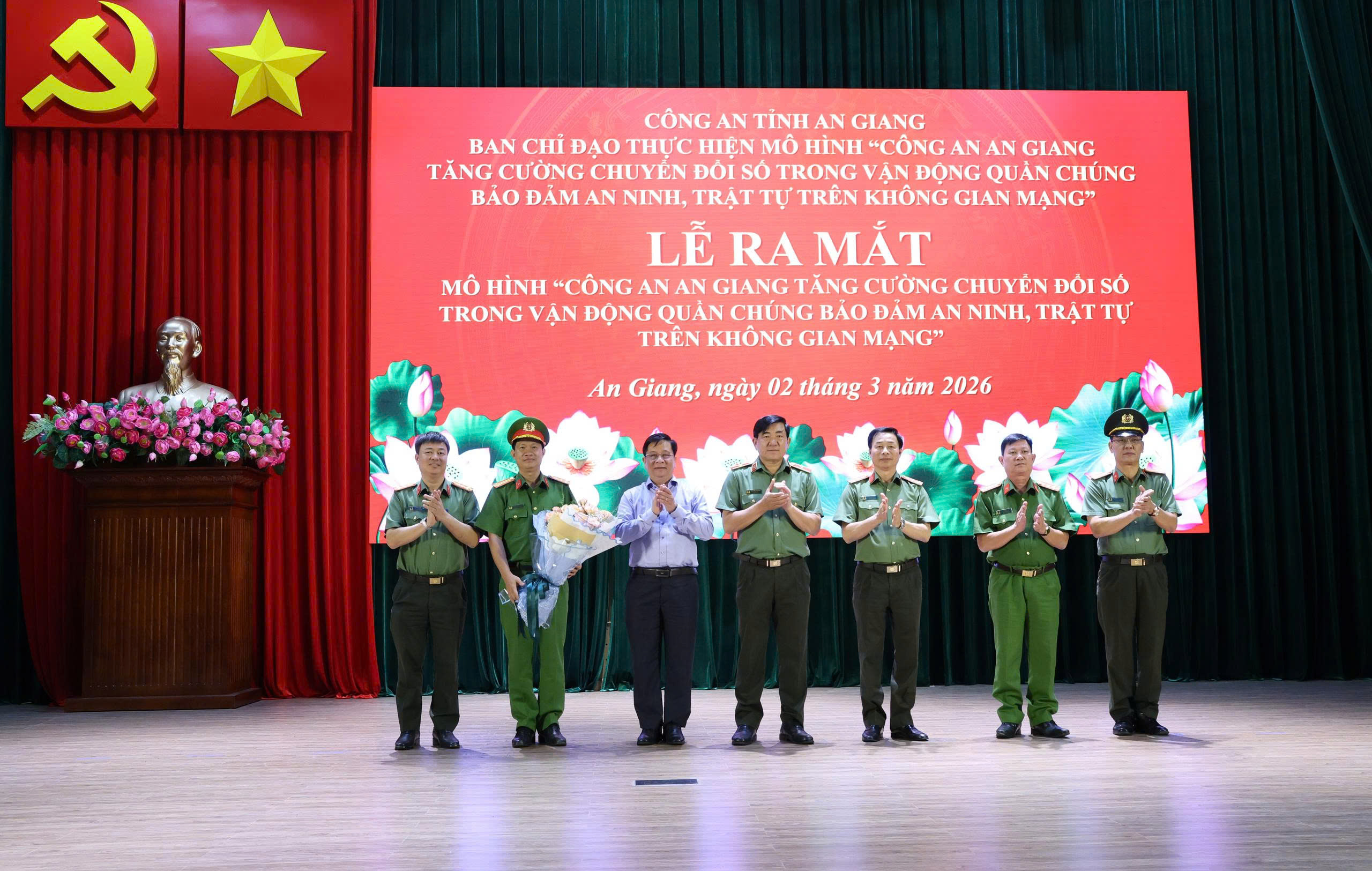 ‎Sáng ngày 02/3/2026, Công an tỉnh An Giang tổ chức lễ ra mắt mô hình “Công an An Giang tăng cường chuyển đổi số trong vận động quần chúng bảo đảm an ninh, trật tự trên không gian mạng”.