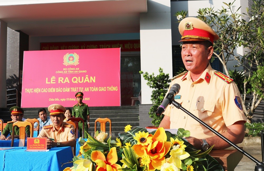 Sáng ngày 15/10/2025, tại phường Châu Đốc, Công an tỉnh phối hợp Công an phường Châu Đốc tổ chức Lễ ra quân thực hiện cao điểm bảo đảm trật tự, an toàn giao thông. Tham dự buổi Lễ có đồng chí Thượng tá Nguyễn Văn Trường, Trưởng phòng Cảnh sát giao thông Công an tỉnh; đồng chí Huỳnh Bửu Toàn, Phó bí thư Đảng ủy, Chủ tịch UBND phường Châu Đốc; đại diện các ban, ngành, đoàn thể phường; lãnh đạo Công an phường và đại diện lãnh đạo Công an các xã, phường: Châu Phú, Vĩnh Tế, Tịnh Biên, Tân Châu và An Phú.