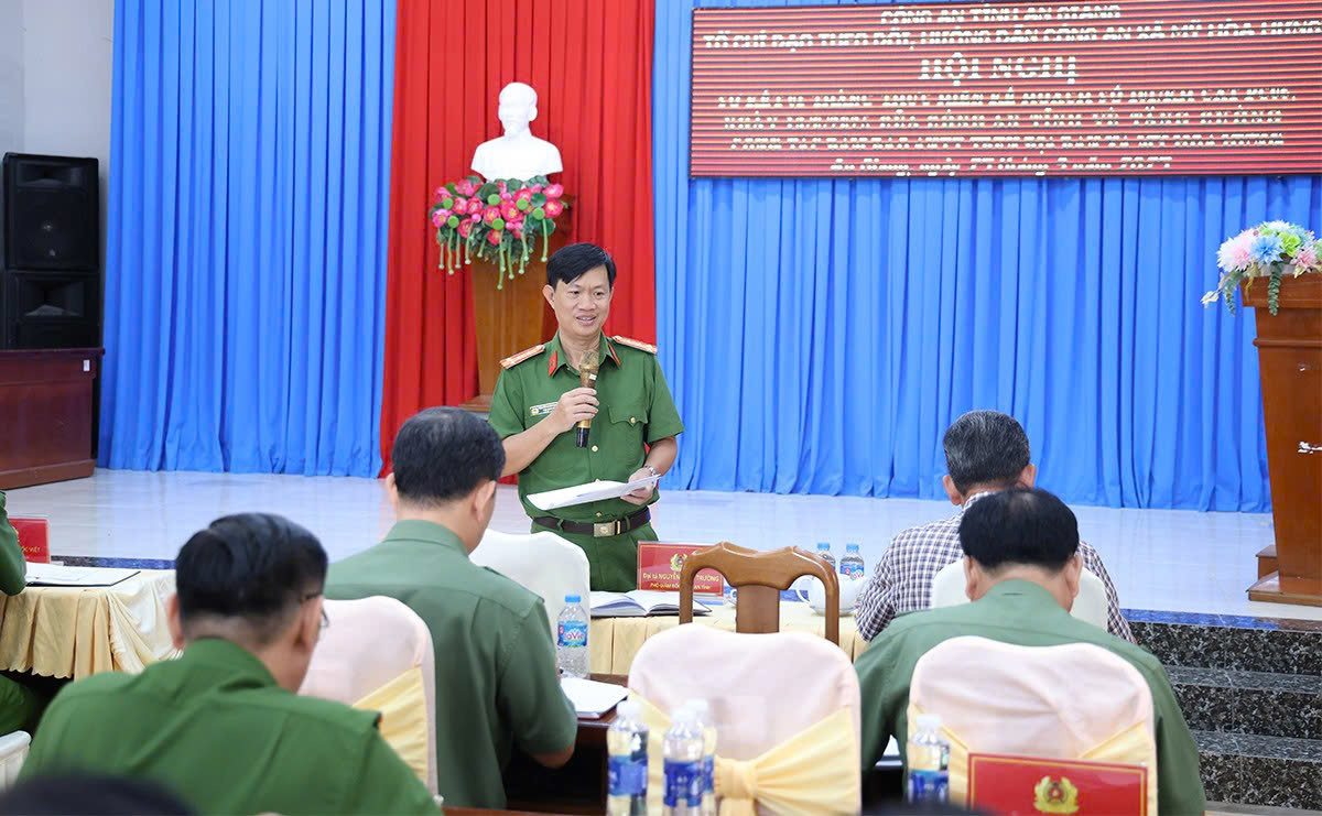 Phát biểu chỉ đạo tại Hội nghị, Đại tá Nguyễn Nhật Trường, Phó Giám đốc Công an tỉnh biểu dương những nỗ lực của các Phòng nghiệp vụ Công an tỉnh và Công an xã Mỹ Hòa Hưng trong thực hiện kế hoạch. Đồng thời đề nghị, các phòng nghiệp vụ Công an tỉnh tiếp tục phối hợp cùng Công an xã Mỹ Hoà Hưng tăng cường tuyên truyền pháp luật về trật tự an toàn giao thông, phòng cháy, chữa cháy, tập trung tuyên truyền, cảnh báo các phương thức, thủ đoạn hoạt động của các loại tội phạm, tệ nạn xã hội, nhất là tội phạm sử dụng công nghệ cao để lừa đảo chiếm đoạt tài sản; song song đó, phải tăng cường công tác tuần tra, kiểm soát khép kín địa bàn, nhằm kịp thời phát hiện, xử lý các hành vi vi phạm pháp luật. Thường xuyên theo dõi, thực hiện và hoàn thành các chỉ tiêu làm sạch dữ liệu được cấp trên giao; kết hợp đẩy mạnh phong trào toàn dân bảo vệ an ninh Tổ quốc, góp phần giữ vững an ninh chính trị, trật tự an toàn xã hội tại địa phương.