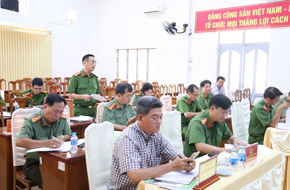 Qua gợi ý thảo luận của đồng chí Phó Giám đốc Công an tỉnh, lãnh đạo các Phòng nghiệp vụ và Chỉ huy Công an xã Mỹ Hoà Hưng đã tập trung tham gia ý kiến, nhằm đưa ra các giải pháp để khắc phục những tồn tại, hạn chế sau 01 tháng triển khai thực hiện kế hoạch.