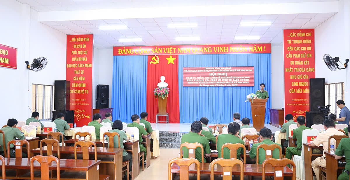 Sáng 26/9/2025, Công an tỉnh An Giang tổ chức Hội nghị sơ kết 1 tháng thực hiện kế hoạch của Công an tỉnh về tăng cường công tác đảm bảo an ninh trật tự trên địa bàn xã Mỹ Hòa Hưng. Đại tá Nguyễn Nhật Trường, Phó Giám đốc Công an tỉnh chủ trì Hội nghị; cùng tham dự còn có đồng chí Nguyễn Trung Nam, Phó Chủ tịch UBND xã Mỹ Hòa Hưng, đại diện lãnh đạo các Phòng nghiệp vụ Công an tỉnh và Ban Chỉ huy Công an xã Mỹ Hoà Hưng.
