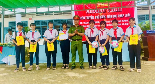 Trong phần tuyên truyền, các em học sinh được trang bị nhiều kiến thức bổ ích về pháp luật học đường, giúp các em hiểu rõ hơn về quy định pháp luật liên quan đến lứa tuổi học sinh, từ đó hình thành ý thức chấp hành pháp luật và sống có trách nhiệm với bản thân, cộng đồng.