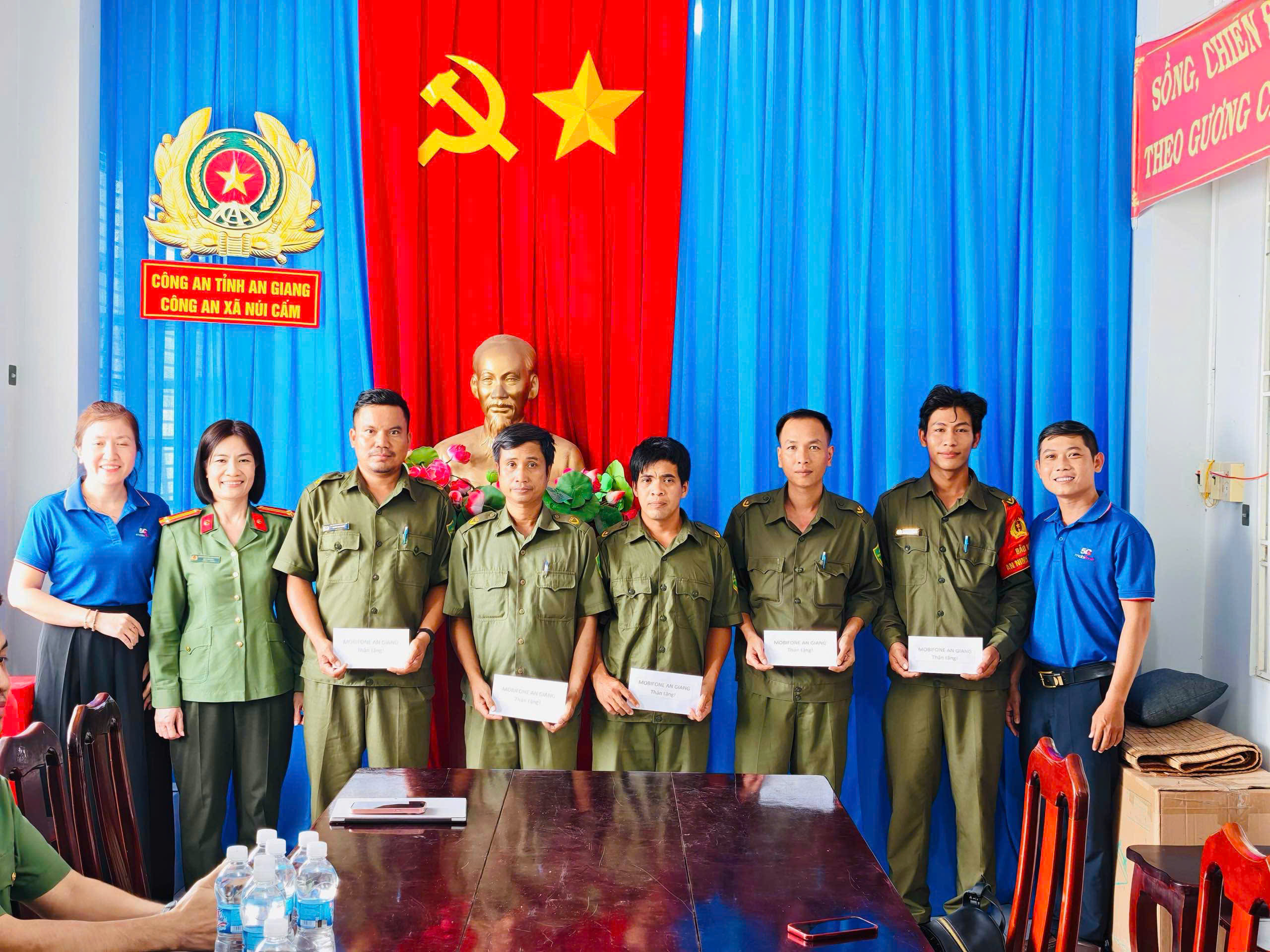 Theo đó, trong hai ngày 20 và 21/3/2026, đơn vị đã tổ chức thăm hỏi, gặp mặt, động viên và trao tặng quà cho 40 đồng chí thuộc lực lượng tham gia bảo vệ an ninh, trật tự ở cơ sở có hoàn cảnh khó khăn trên địa bàn các xã Ô Lâm, Núi Cấm, Châu Phong. Tổng kinh phí trao tặng là 20 triệu đồng. Những phần quà tuy giá trị không lớn nhưng thể hiện sự quan tâm, sẻ chia của lực lượng Công an đối với lực lượng đang ngày đêm bám địa bàn, góp phần giữ vững ổn định an ninh, trật tự tại cơ sở.
