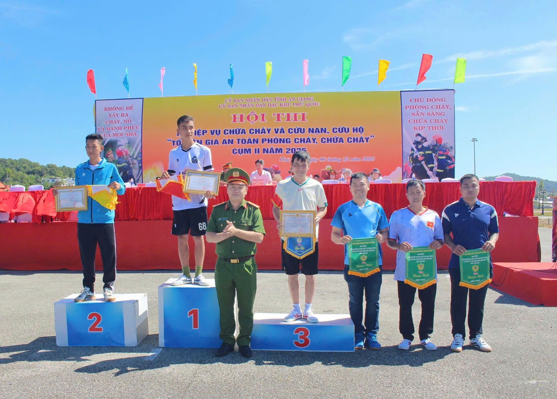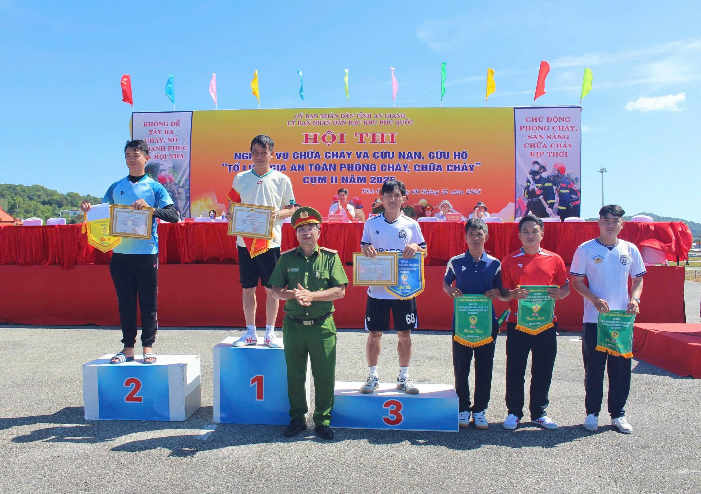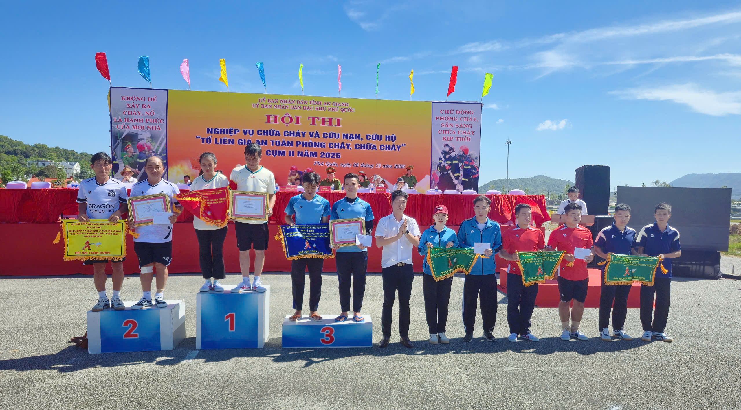 Sau một buổi tranh tài sôi nổi, Tổ liên gia an toàn PCCC đặc khu Phú Quốc xuất sắc giành giải nhất phần thi thực hành, phần thi lý thuyết giải nhất thuộc về Tổ liên gia an toàn PCCC phường Hà Tiên. Đồng thời, Ban Tổ chức cũng đã trao 01 giải nhì, 01 giải ba, 03 giải khuyến khích cho từng nội dung thi cho các đội. Đối với giải toàn đoàn, giải nhất thuộc về đặc khu Phú Quốc, giải nhì phường Hà Tiên, giải ba xã Giang Thành, 03 giải khuyến khích lần lượt được trao cho đặc khu Kiên Hải, xã Hòa Điền và xã Sơn Kiên./.