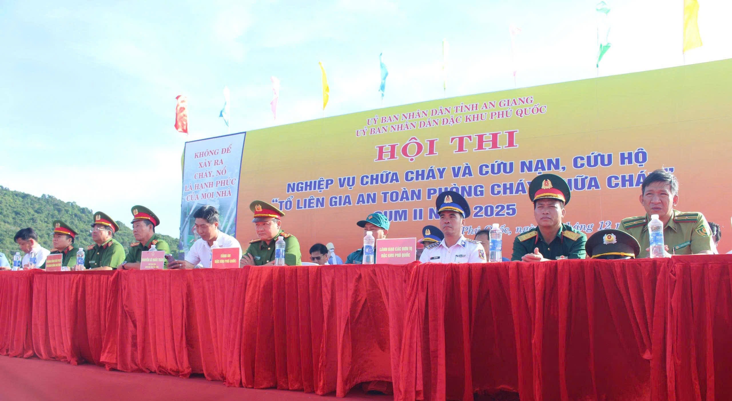 Ngày 19/11/2025, UBND đặc khu Phú Quốc tổ chức Hội thi nghiệp vụ chữa cháy và cứu nạn, cứu hộ “Tổ liên gia an toàn phòng cháy, chữa cháy” Cụm II gồm các xã, phường, đặc khu: Phú Quốc, Kiên Hải, Thổ Hâu, Hà Tiên, Tô Châu, Tiên Hải, Hoà Điền, Kiên Lương, Hòn Nghệ, Sơn Hải, Giang Thành, Vĩnh Điều, Hòn Đất, Sơn Kiên, Mỹ Thuận, Bình Giang, Bình Sơn.