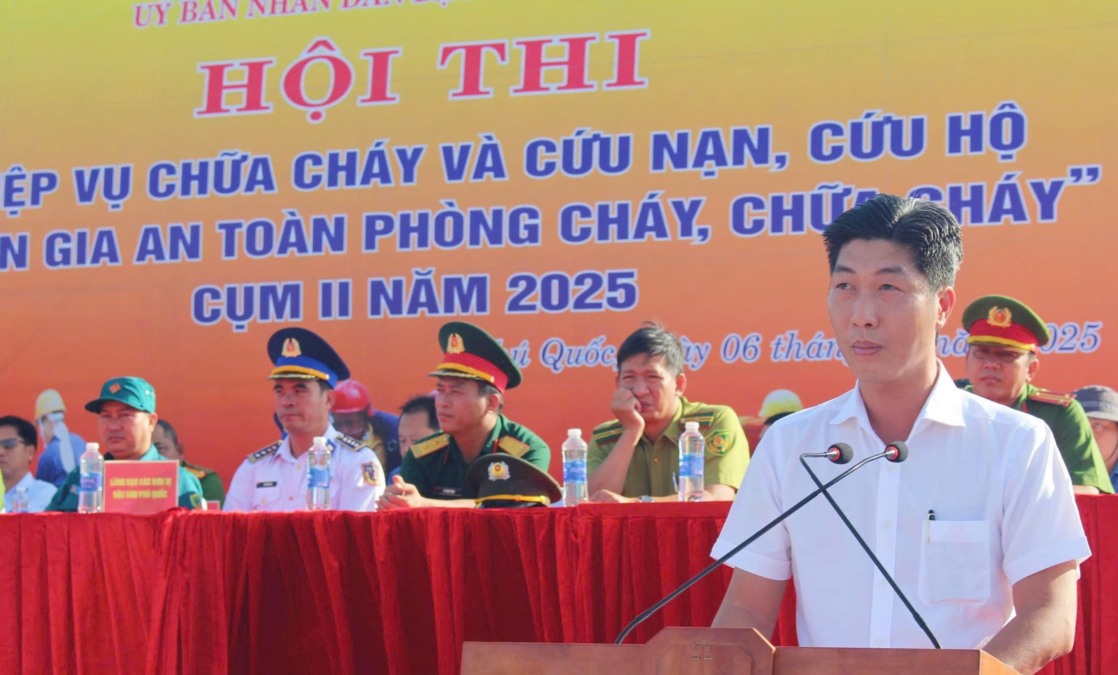 Phát biểu khai mạc Hội thi ông Nguyễn Lê Quốc Toàn, Phó Chủ tịch UBND đặc khu Phú Quốc cho biết: “Thời gian qua, công tác PCCC trên địa bàn đặc khu Phú Quốc luôn được xác định là nhiệm vụ trọng tâm. Các lực lượng, đặc biệt lực lượng PCCC thường xuyên tăng cường tuyên truyền, hướng dẫn kỹ năng nhằm hạn chế thấp nhất các vụ cháy, đặc biệt vào mùa khô. Các lực lượng, phương tiện, trang thiết bị luôn trong trạng thái sẵn sàng ứng phó. Hội thi là dịp để các Tổ liên gia rèn luyện kỹ năng, tích lũy kinh nghiệm, nâng cao khả năng xử lý tình huống, thực hiện tốt phương châm “4 tại chỗ”, góp phần bảo vệ tính mạng và tài sản của Nhân dân.”