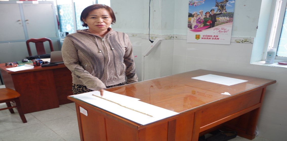 Trước đó, chiều 05/11/2025, Công an xã An Châu tiếp nhận tin báo của chủ tiệm vàng thuộc ấp Hòa Long 4, xã An Châu về việc đã bắt quả tang đối tượng Nguyễn Thị Hoàng có hành vi lấy trộm 01 sợi dây chuyền vàng. Sau khi tiếp nhận tin báo, Công an xã An Châu nhanh chóng có mặt tại hiện trường đưa đối tượng về trụ sở làm việc.