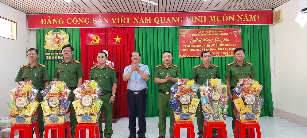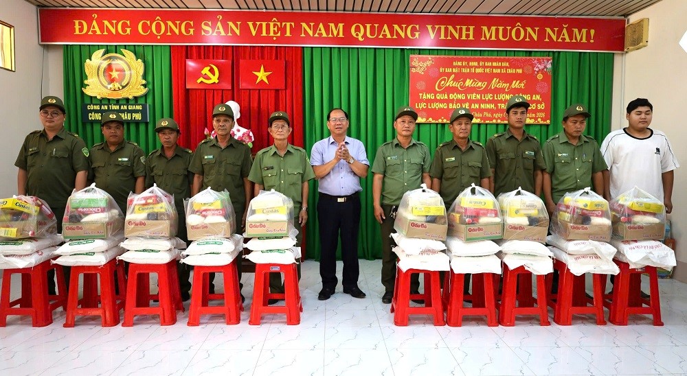 Tại hoạt động, đoàn đã trao tặng 12 phần quà cho Ban Lãnh đạo và Chỉ huy Công an xã, trao tặng 52 phần quà cho lực lượng bảo vệ an ninh trật tự cơ sở. Phát biểu tại buổi trao quà, ông Lê Quốc Phong, Phó Bí thư Đảng ủy, Chủ tịch UBND xã biểu dương thời gian qua Công an xã Châu Phú đã phát huy vai trò nòng cốt, thực hiện tốt công tác đảm bảo an ninh trật tự trên địa bàn. Nhất là đối với lực lượng tham gia bảo vệ an ninh trật tự cơ sở đã vượt qua khó khăn cùng với Công an xã thực hiện tốt công tác nắm tình hình địa bàn, tham gia tuần tra góp phần giữ vững ổn định tình hình an ninh trật tự tại địa phương.