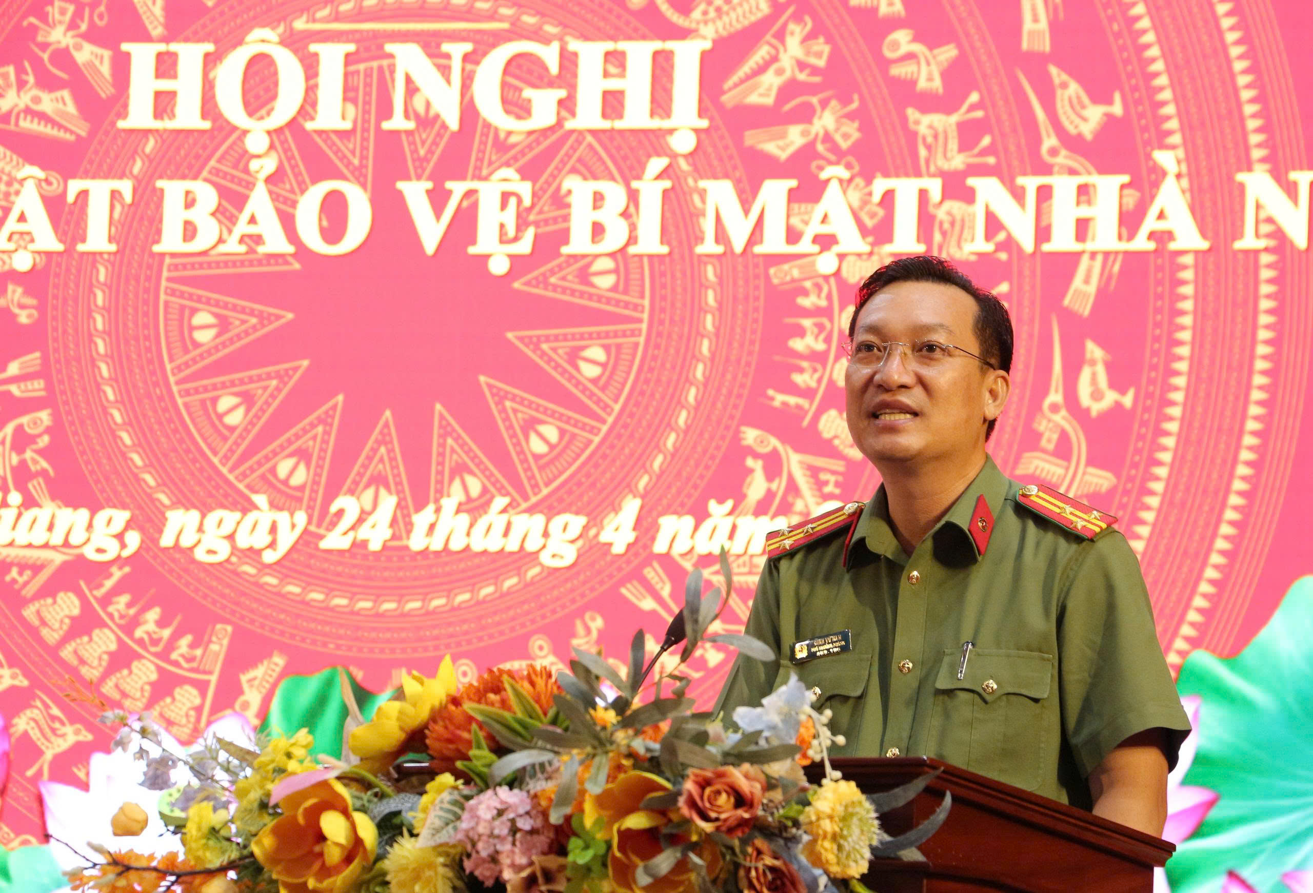 Ngày 24-4, Ban Chỉ đạo công tác bảo vệ bí mật nhà nước tỉnh An Giang tổ chức Hội nghị tập huấn Luật Bảo vệ bí mật nhà nước (BMNN) với sự tham dự của hơn 460 đại biểu là lãnh đạo, cán bộ phụ trách công tác bảo vệ BMNN đang công tác tại các sở, ban, ngành, đơn vị nghiệp cấp tỉnh, các cơ quan Đảng tỉnh và Đảng uỷ, UBND các xã, phường, đặc khu… Đại tá Đào Hải Đăng, Phó Giám đốc Công an tỉnh, Phó Trưởng ban Thường trực Ban Chỉ đạo Công tác bảo vệ bí mật nhà nước tỉnh (gọi tắt là Ban Chỉ đạo) dự và phát biểu khai mạc.