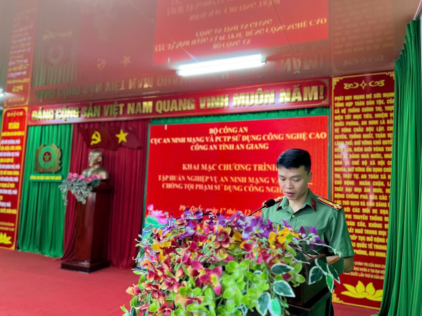 Phát biểu tại lớp tập huấn, đại diện Cục ANM & PCTP SDCNC nhấn mạnh: trong bối cảnh chuyển đổi số diễn ra mạnh mẽ, không gian mạng ngày càng trở thành địa bàn hoạt động phức tạp của các loại tội phạm, việc nâng cao trình độ chuyên môn, nghiệp vụ cho lực lượng Công an cơ sở, nhất là tại các địa bàn trọng điểm về kinh tế, du lịch như Phú Quốc, có ý nghĩa hết sức quan trọng.
