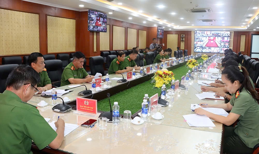 Hội nghị tổ chức bằng hình thức trực tiếp kết hợp trực tuyến đến Công an các tỉnh và thành phố trực thuộc Trung ương. Đồng chí Đại tá Trần Văn Cung, Phó Giám đốc Công an tỉnh dự và chủ trì tại điểm cầu Công an tỉnh An Giang