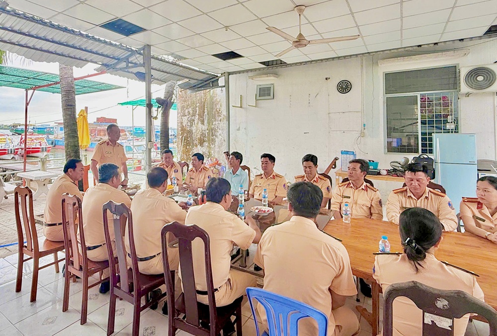 Thượng tá Nguyễn Văn Trường, Trưởng phòng Cảnh sát giao thông chúc tết Đội Cảnh sát giao thông số 3 và Đội Cảnh sát đường thủy số 2