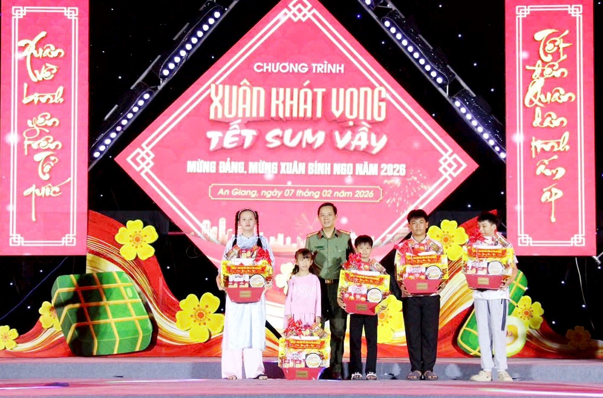 Trước đó, tại Chương trình “Xuân khát vọng, Tết sum vầy” mừng Đảng, mừng Xuân Bính Ngọ năm 2026 vào tối ngày 07/02, Đại tá Lê Phú Thạnh, Phó Giám đốc Công an tỉnh đã chúc tết và tặng quà cho 05 cháu là con cán bộ, chiến sĩ đang bị bệnh và con thương binh.