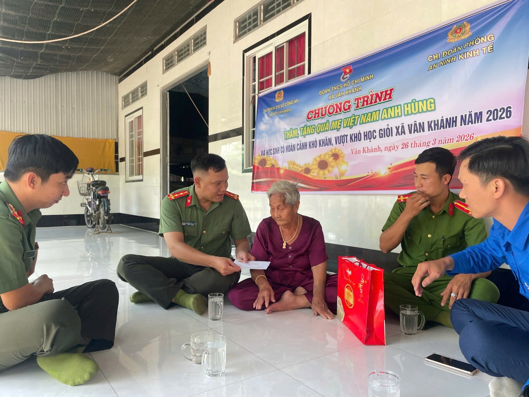 ‎Thiết thực hưởng ứng Tháng Thanh niên trong tuổi trẻ Công an tỉnh An Giang, Chi đoàn Phòng An ninh kinh tế đã phối hợp Công an xã Vân Khánh, Xã Đoàn Vân Khánh tổ chức Chương trình thăm, tặng quà mẹ Việt Nam anh hùng và học sinh có hoàn cảnh khó khăn, vượt khó học giỏi trên địa bàn xã Vân Khánh.