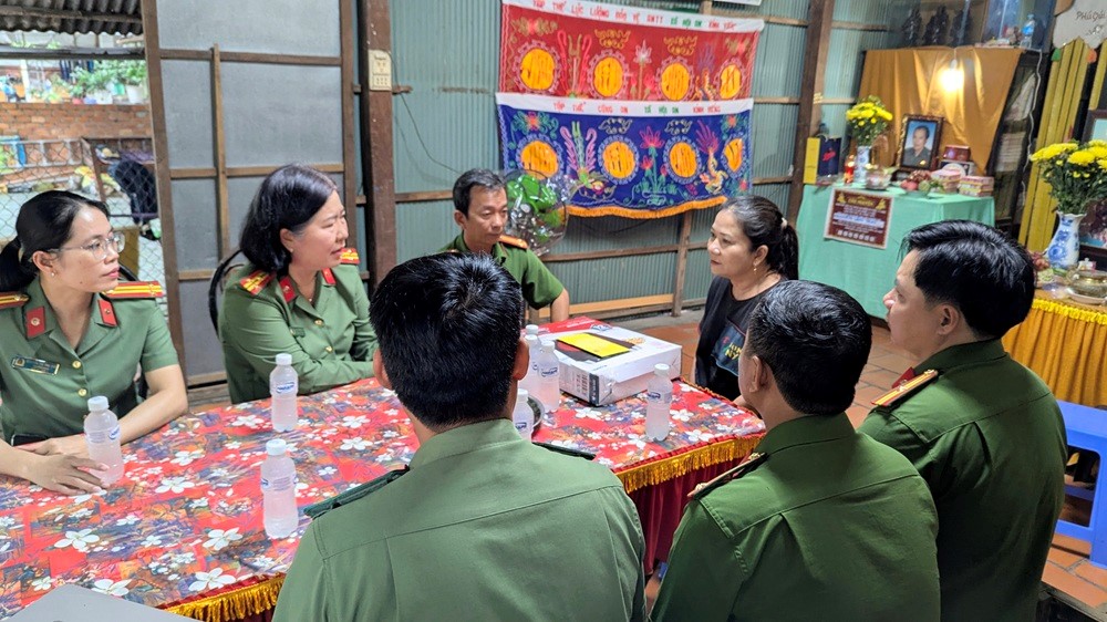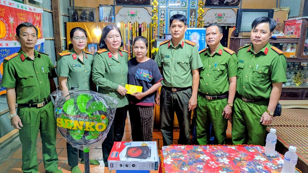 Chiều ngày 7/11/2025, thừa ủy quyền của Đảng ủy, Ban Giám đốc Công an tỉnh An Giang, đoàn công tác Công an tỉnh do đồng chí Thượng tá Trần Thị Thanh Tâm, Phó Trưởng phòng Tổ chức cán bộ Công an tỉnh làm trưởng đoàn đã đến trao kinh phí hỗ trợ và tặng quà cho gia đình ông Nguyễn Văn Trai, sinh năm 1963, là lực lượng tham gia bảo vệ ANTT ở cơ sở xã Hội An bị tử vong trong thực hiện nhiệm vụ tại địa phương.
