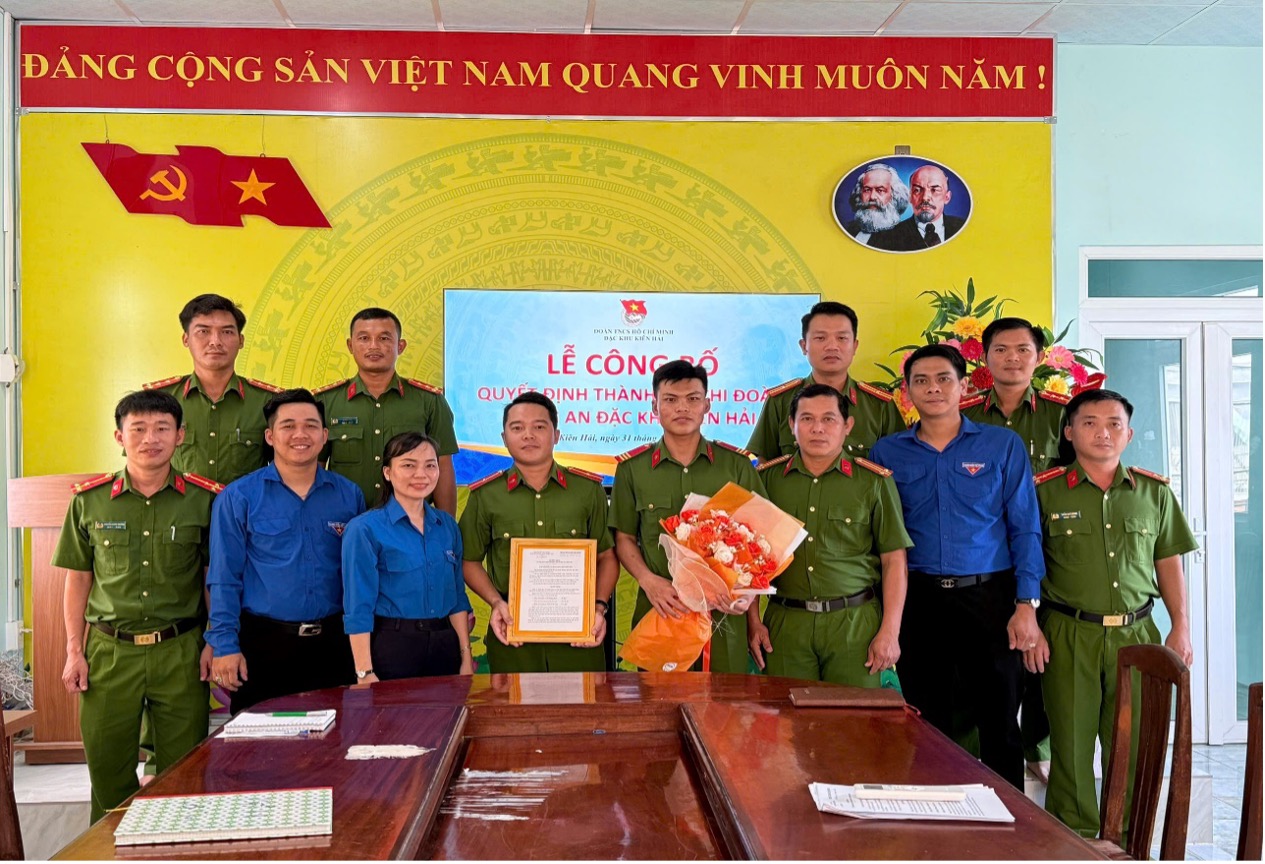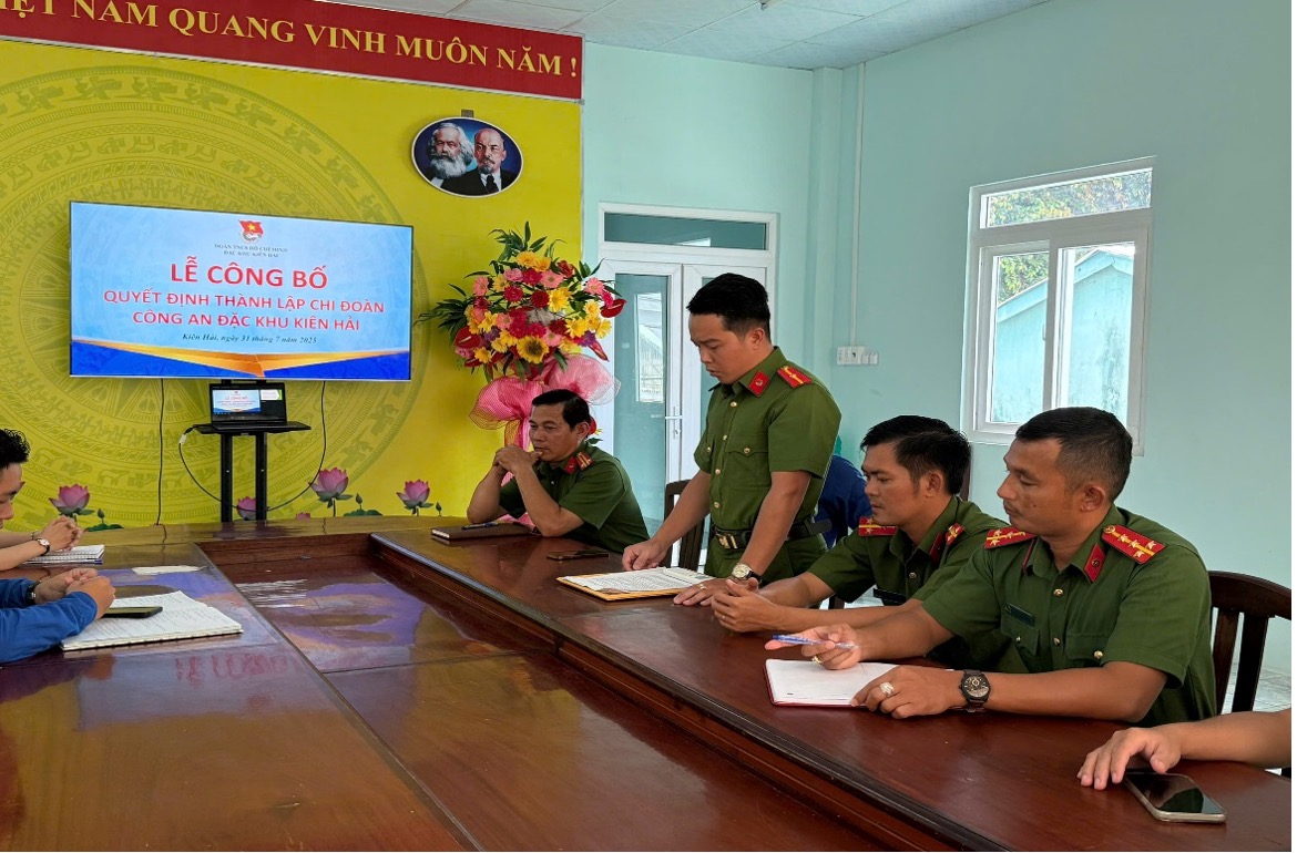 Ngày 31/7/2025, Đoàn Thanh niên Cộng sản Hồ Chí Minh đặc khu Kiên Hải, tỉnh An Giang long trọng tổ chức Lễ công bố quyết định thành lập và ra mắt Chi đoàn Công an đặc khu Kiên Hải. Đến dự buổi lễ có đồng chí Nguyễn Thị Trúc Phương - Đảng ủy viên, Phó Chủ tịch Uỷ ban Mặt trận Tổ quốc Việt Nam kiêm Bí thư Đoàn đặc khu; đồng chí Trung tá Lâm Phú Hải - Phó Trưởng Công an đặc khu và các đồng chí đoàn viên Công an đặc khu.