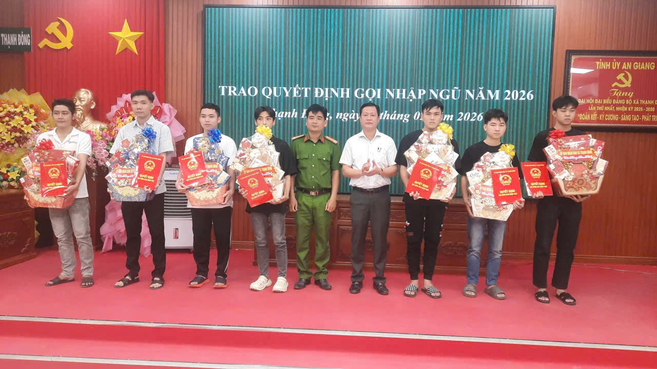 Sáng ngày 05/3/2026 tại Khu vực phòng thủ số 06, xã Ngọc Chúc - 07 thanh niên ưu tú trên địa bàn xã Thạnh Đông, tỉnh An Giang đã hăng hái lên đường thực hiện nghĩa vụ tham gia Công an nhân dân năm 2026, thể hiện tinh thần trách nhiệm, lòng tự hào và khát vọng cống hiến cho sự nghiệp bảo vệ an ninh Tổ quốc.