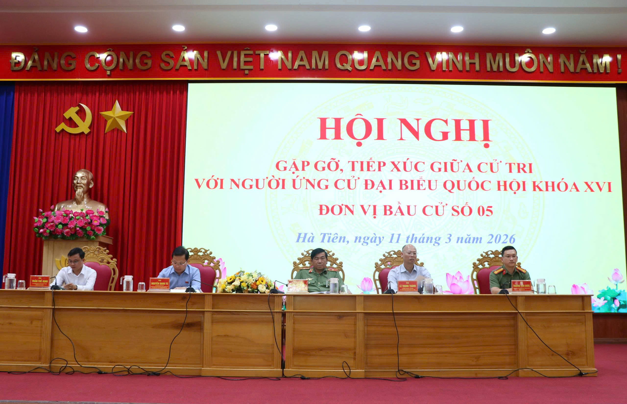 Chiều ngày 11/3/2026, Ban Thường trực Ủy ban MTTQ Việt Nam tỉnh An Giang tổ chức Hội nghị gặp gỡ, tiếp xúc giữa cử tri phường Hà Tiên và phường Tô Châu với những người ứng cử đại biểu Quốc hội khóa XVI, nhiệm kỳ 2026 – 2031 thuộc đơn vị bầu cử số 5 nhằm thực hiện vận động bầu cử theo đúng quy định của pháp luật.