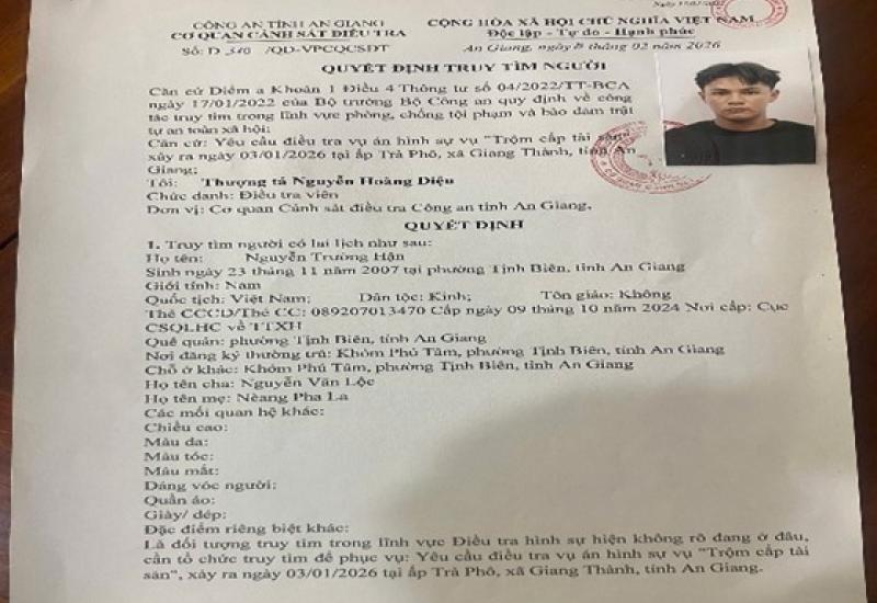 Ngày 10/6/2025, Phòng Cảnh sát Giao thông Công an tỉnh An Giang có thông báo số 33/TB-PC08-XL về việc lựa chọn tổ chức hành nghề đấu giá tài sản: