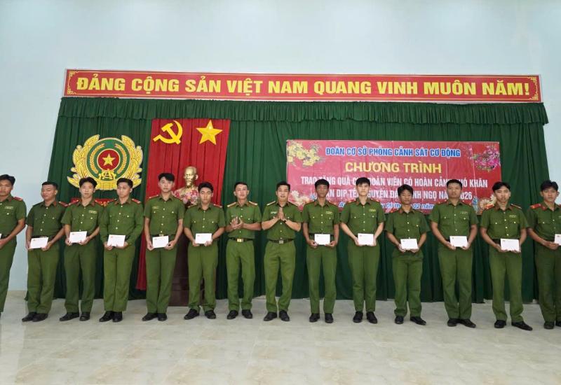 Nhằm chia sẻ, động viên cán bộ chiến sỹ, đoàn viên thanh niên nhân dịp Tết Nguyên đán Bính Ngọ năm 2026, Đoàn cơ sở Phòng Cảnh sát cơ động, Công an tỉnh An Giang đã tổ chức họp mặt, trao quà cho đoàn viên có hoàn cảnh khó khăn.