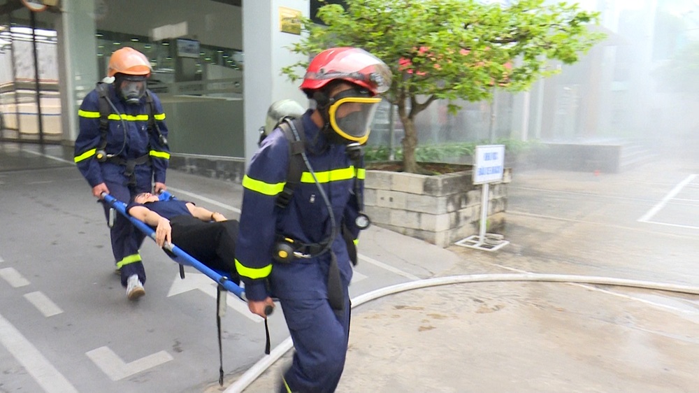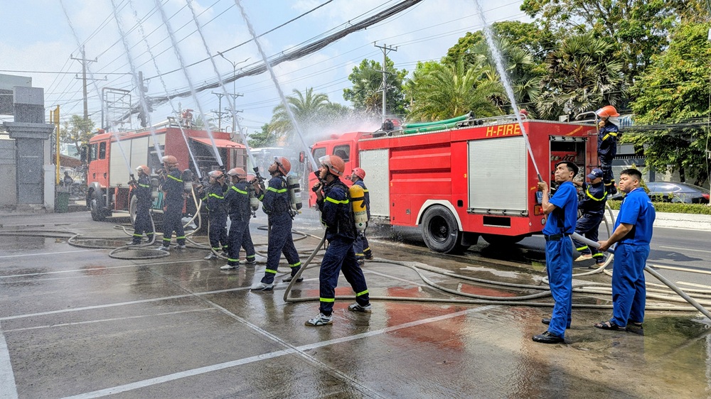 Theo tình huống giả định, do sự cố chập điện gây cháy tại khu vực kho phụ tùng của công ty. Ngọn lửa bùng phát dữ dội và nhanh chóng cháy lan sang các khu vực khác trong công ty sinh ra nhiều khói, khí độc gây nguy hiểm đến tính mạng của nhiều người và gây khó khăn cho công tác chữa cháy, cứu nạn.