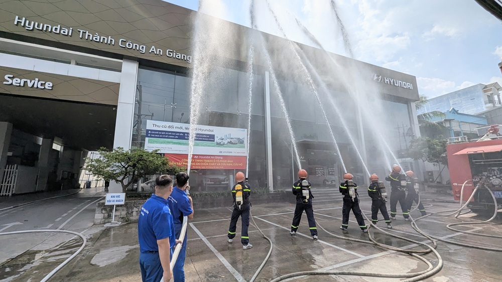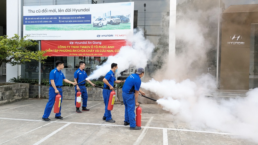Chiều ngày 28/3/2026, tại phường Mỹ Thới, tỉnh An Giang, Phòng Cảnh sát PCCC và CNCH Công an tỉnh phối hợp Công ty TNHH thương mại và dịch vụ ôtô Phúc Anh tổ chức thực tập phương án chữa cháy và cứu nạn cứu hộ tại công ty.