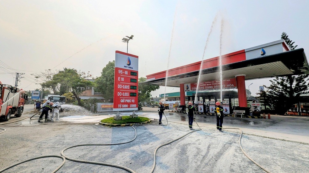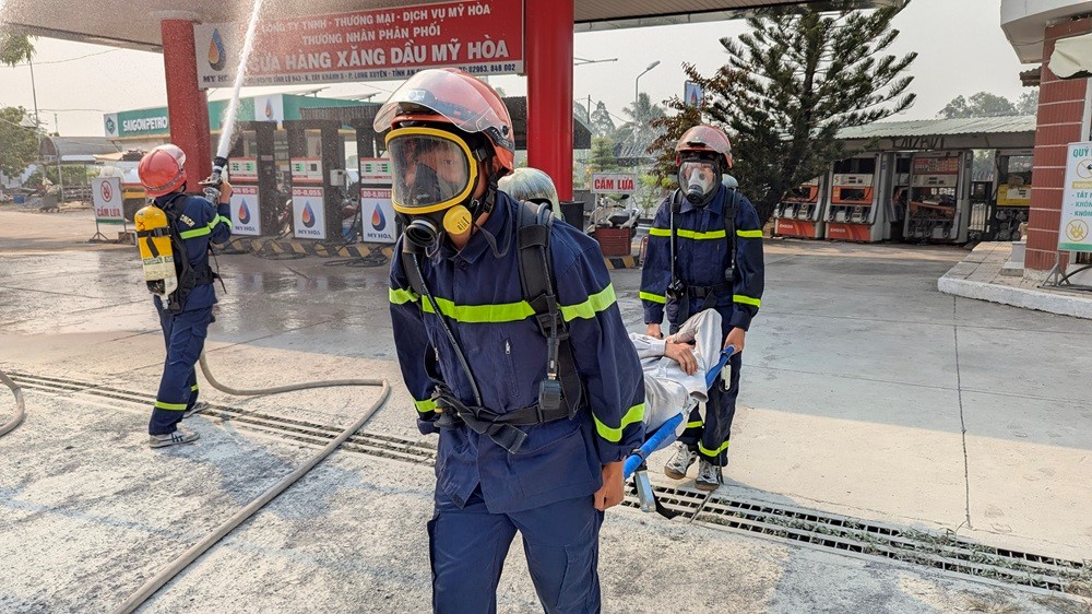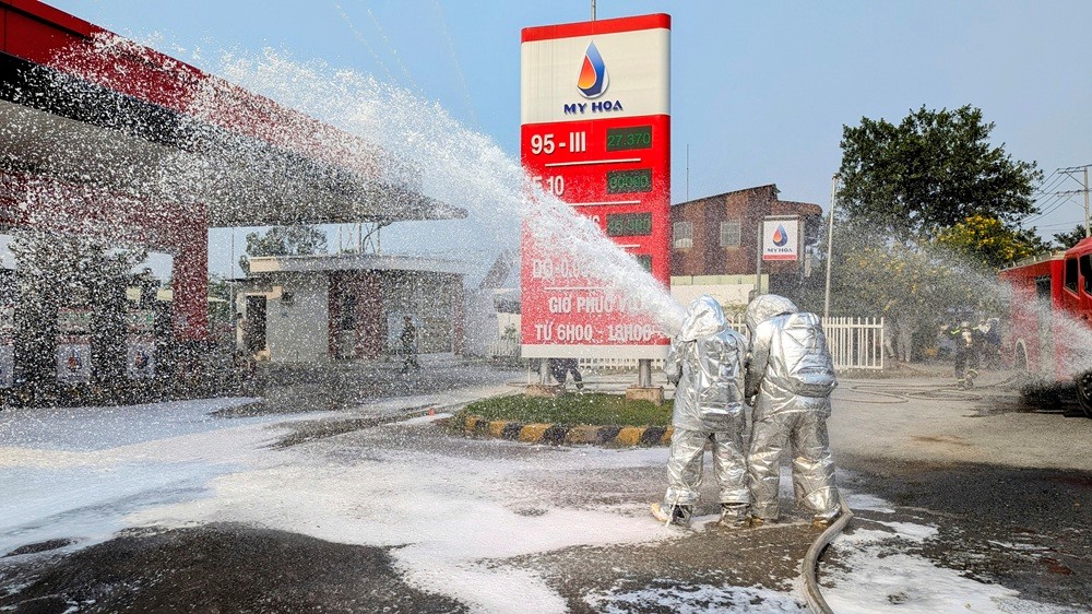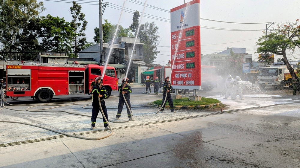 Thực tập phương án chữa cháy và cứu nạn cứu hộ tại cửa hàng xăng dầu Mỹ Hòa