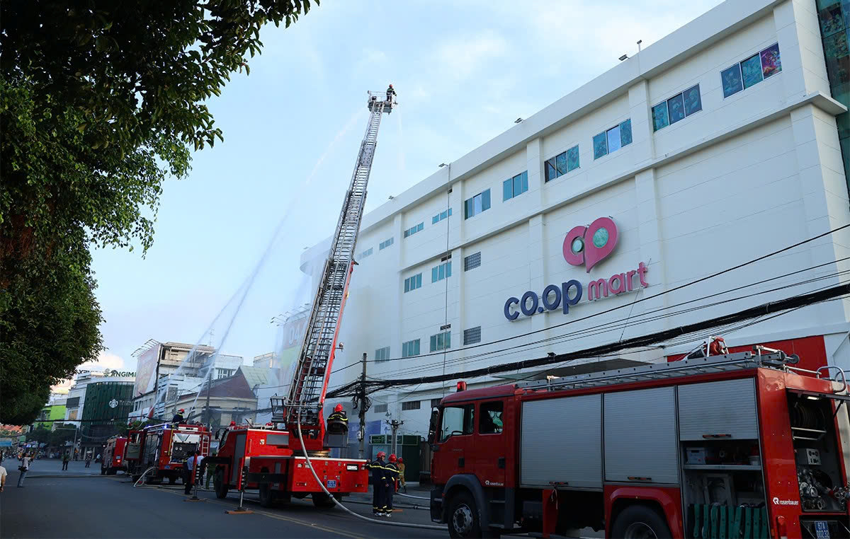 Phát hiện đám cháy, nhân viên Siêu thị Coopmart Long Xuyên đã ấn chuông báo động, nhanh chóng sử dụng phương tiện, dụng cụ chữa cháy có sẵn triển khai các phương án chữa cháy ban đầu, đồng thời gọi điện báo cháy đến lực lượng chữa cháy chuyên nghiệp.