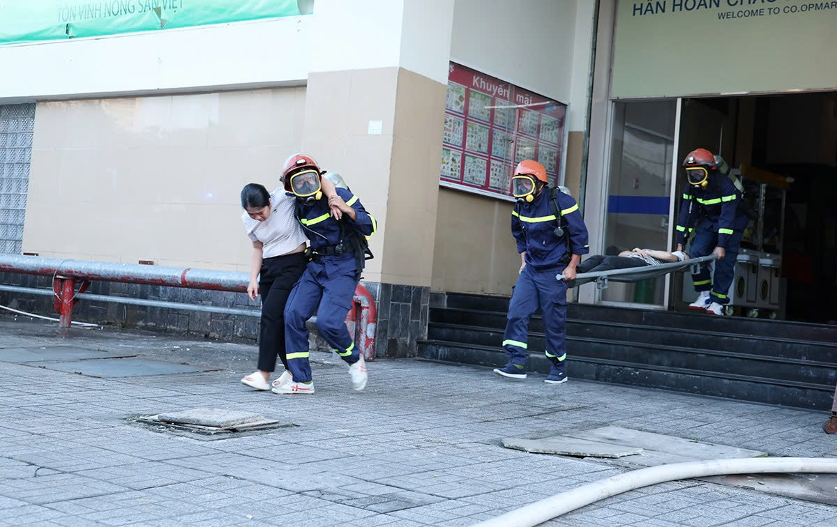 Thực tập phương án chữa cháy và cứu nạn cứu hộ tại Siêu thị Coopmart Long Xuyên