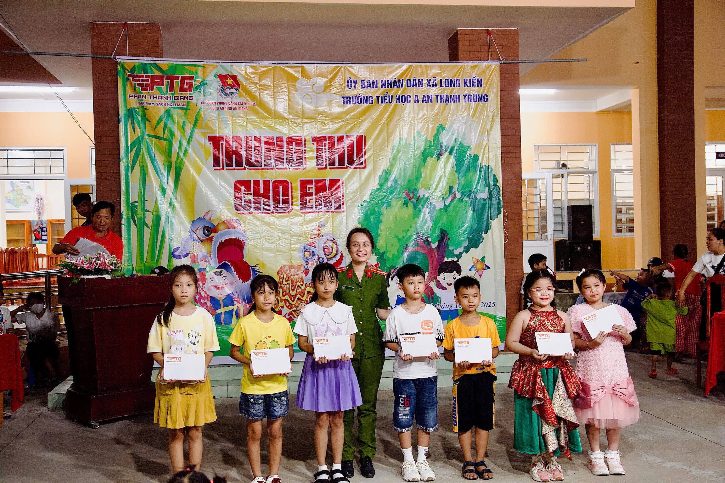 ‎Chi đoàn, Chi hội phụ nữ Phòng Cảnh sát điều tra tội phạm (CSĐTTP) về tham nhũng, kinh tế, buôn lậu, môi trường, Công an tỉnh phối hợp UBND xã Long Kiến cùng đơn vị đồng hành tài trợ, tổ chức hoạt động Tết Trung thu năm 2025 với chương trình “Trung thu cho em” tại Trường Tiểu học A An Thạnh Trung, xã Long Kiến, tỉnh An Giang.