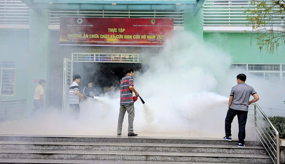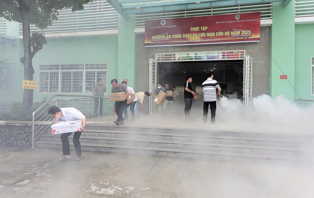Trung tâm Y tế Long Xuyên thực tập phương án chữa cháy và cứu nạn cứu hộ