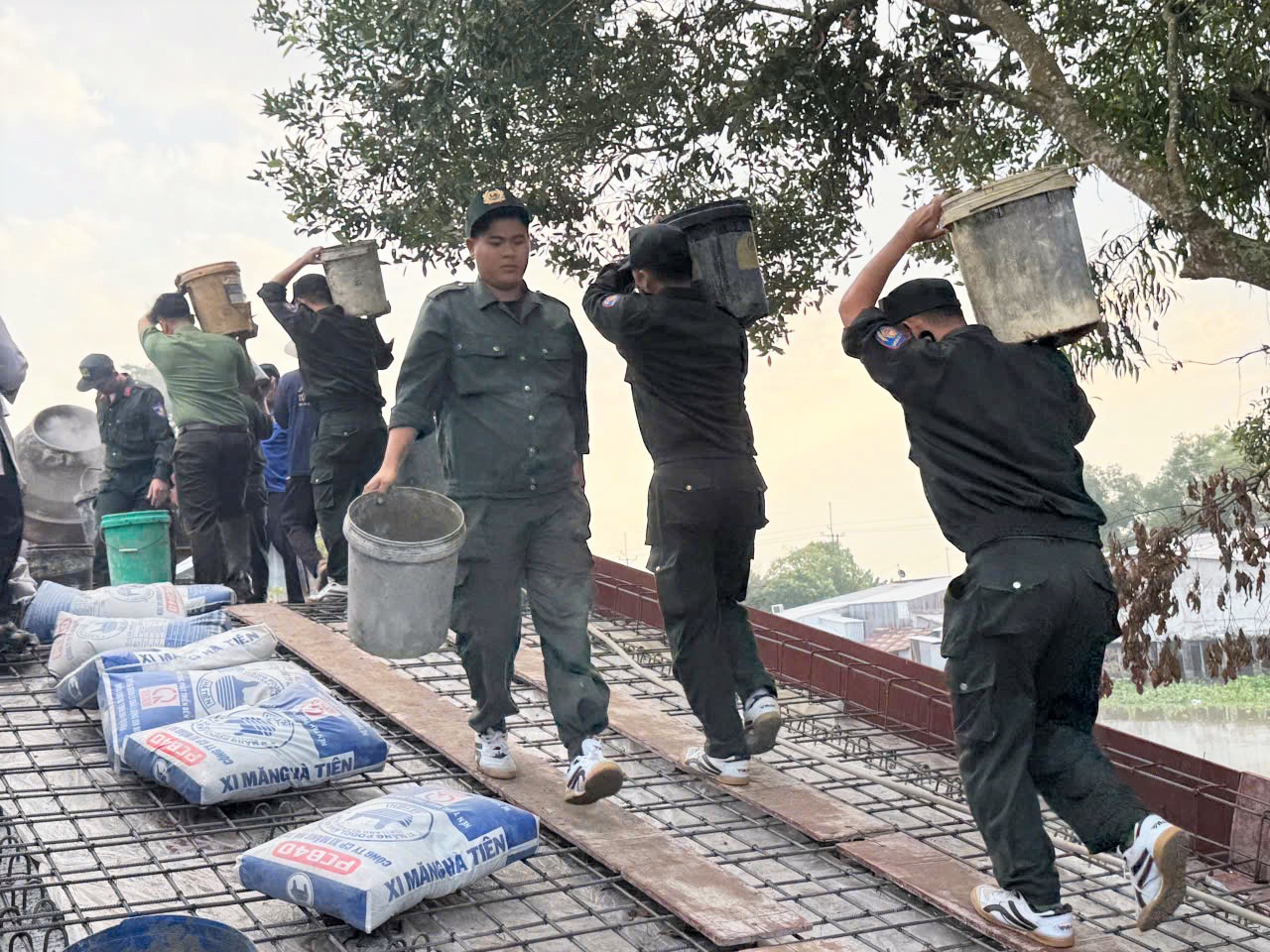Trong điều kiện thi công còn nhiều khó khăn, thời tiết nắng nóng, mặt bằng chật hẹp, song cán bộ, chiến sĩ Công an nhân dân đã không quản ngại vất vả, trực tiếp tham gia vận chuyển vật liệu, trộn bê tông, đổ mặt cầu… Hình ảnh từng xô bê tông được chuyền tay, từng bao xi măng được gánh trên vai không chỉ thể hiện tinh thần trách nhiệm, ý chí quyết tâm hoàn thành công trình đúng tiến độ, mà còn để lại ấn tượng sâu sắc, tình cảm tốt đẹp trong lòng Nhân dân.