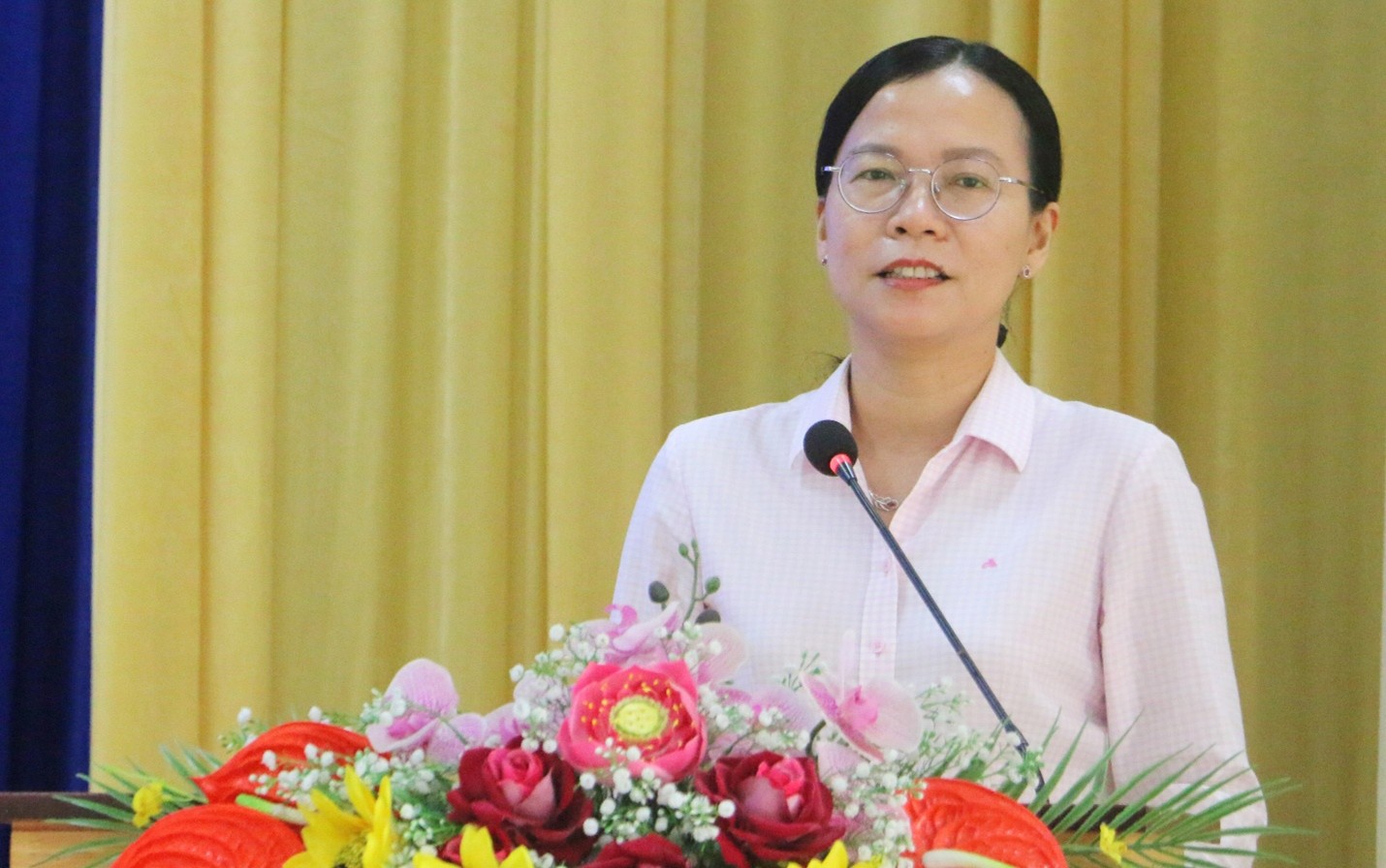Bà Quách Tố Giang, Tỉnh ủy viên, Bí thư Đảng uỷ xã An Phú, tỉnh An Giang phát biểu tại buổi lễ