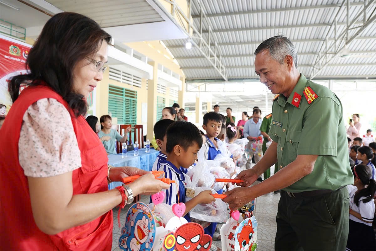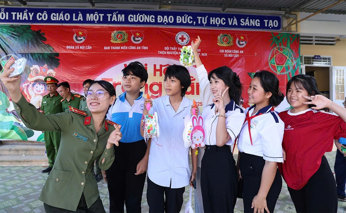 Nhân dịp Tết Trung thu 2025, chiều 5/10, Ban Thanh niên Công an tỉnh An Giang phối hợp cùng Công an 02 xã Tri Tôn, Núi Cấm và các nhà hảo tâm tổ chức Chương trình “Vui hội trăng rằm” cho trẻ em có hoàn cảnh khó khăn trong vùng đồng bào dân tộc và miền núi tỉnh An Giang.