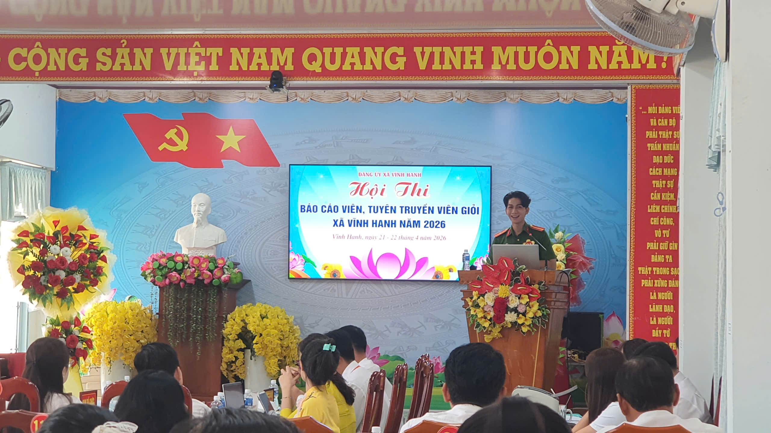 Đảng ủy xã Vĩnh Hanh vừa tổ chức thành công Hội thi Báo cáo viên, Tuyên truyền viên giỏi năm 2026. Hội thi là hoạt động chính trị quan trọng nhằm cụ thể hóa việc triển khai thực hiện Nghị quyết Đại hội đại biểu toàn quốc lần thứ XIV của Đảng và Nghị quyết Đại hội Đảng bộ các cấp, nhiệm kỳ 2025–2030.