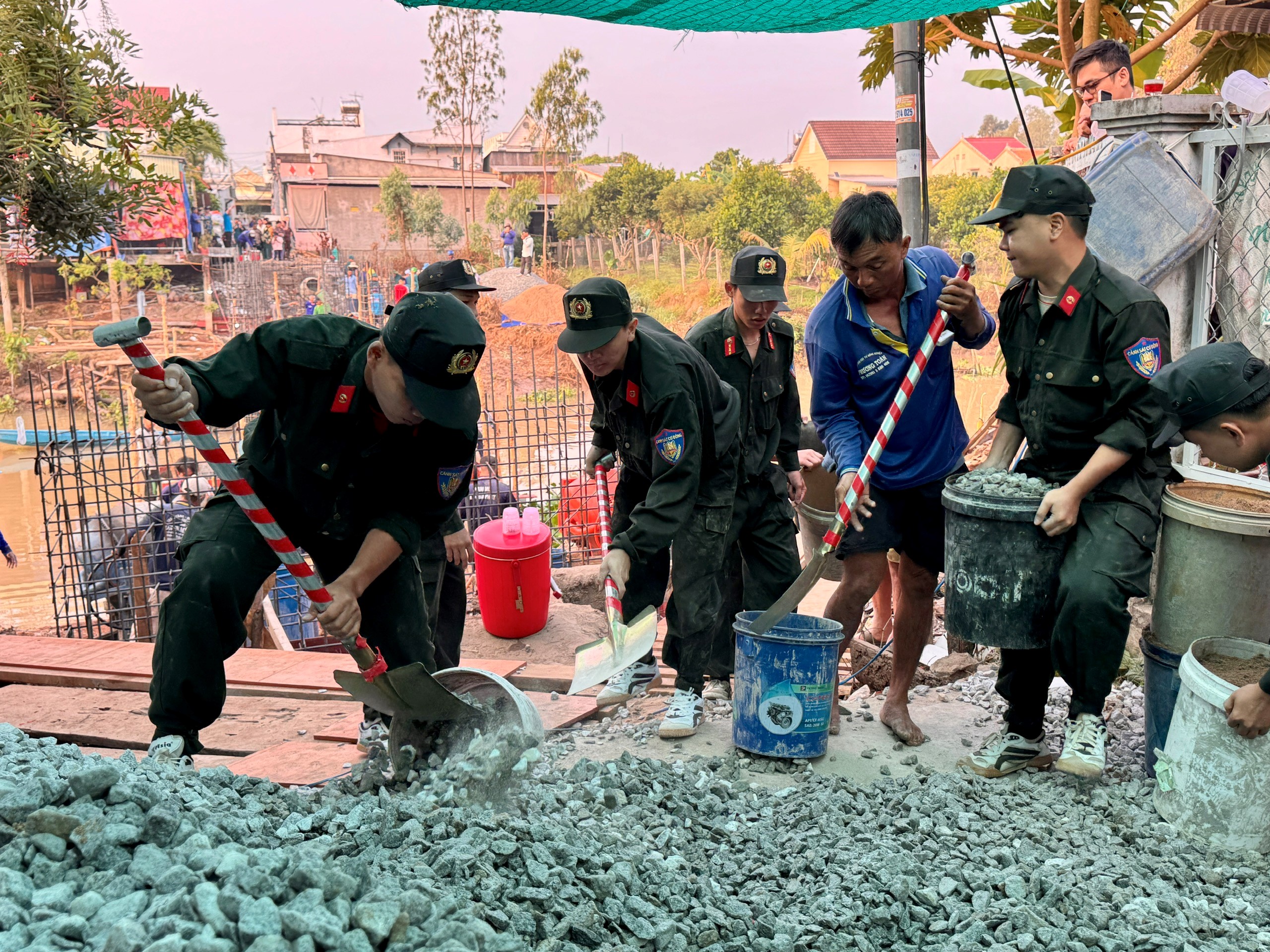 Tuổi trẻ phòng An ninh nội địa và phòng Cảnh sát cơ động chung tay giúp dân xây cầu