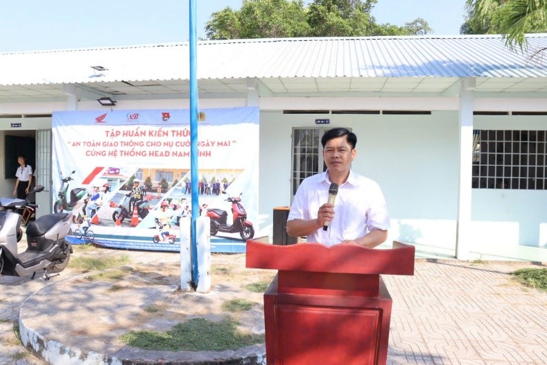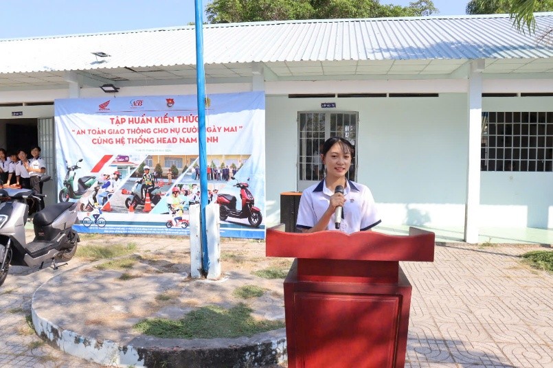 Bên cạnh đó, đại diện HEAD Nam Bình đã giới thiệu hệ thống biển báo hiệu giao thông đường bộ, hướng dẫn kỹ năng lái xe an toàn, tổ chức phần hỏi – đáp nhanh nhằm củng cố kiến thức cho học sinh. Qua đó, giúp các em nâng cao nhận thức, hình thành ý thức tự bảo vệ bản thân và xây dựng văn hóa giao thông văn minh.