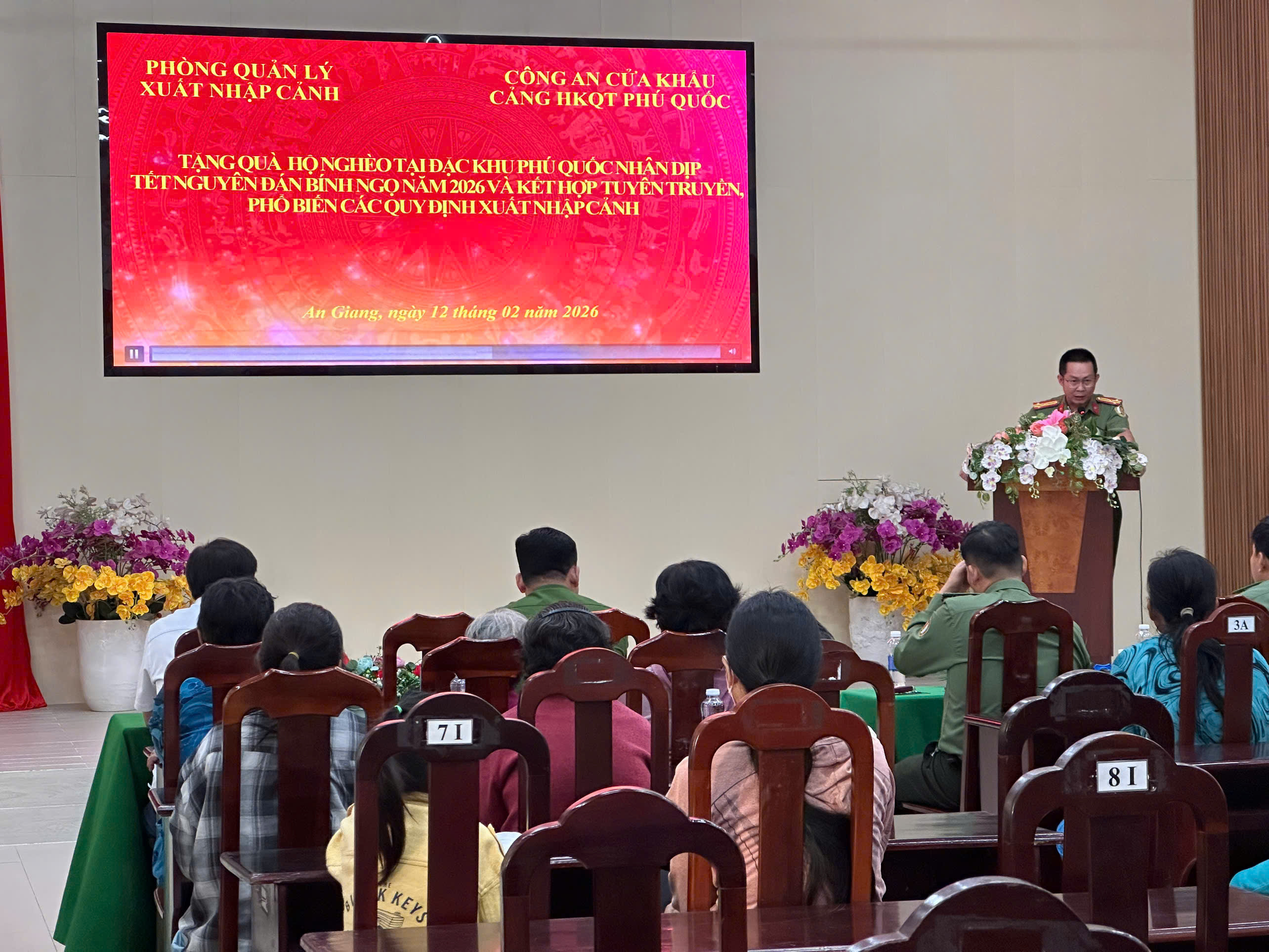 ‎Trong không khí Tết đến, xuân về, Phòng Quản lý xuất nhập cảnh Công an tỉnh An Giang đã tổ chức Chương trình “Xuân hải đảo – Tết sẻ chia”, tuyên truyền, phổ biến pháp luật và trao tặng quà cho bà con nhân dân trên địa bàn Phú Quốc, góp phần bảo đảm an ninh, trật tự trước thềm Tết Nguyên đán Bính Ngọ 2026.